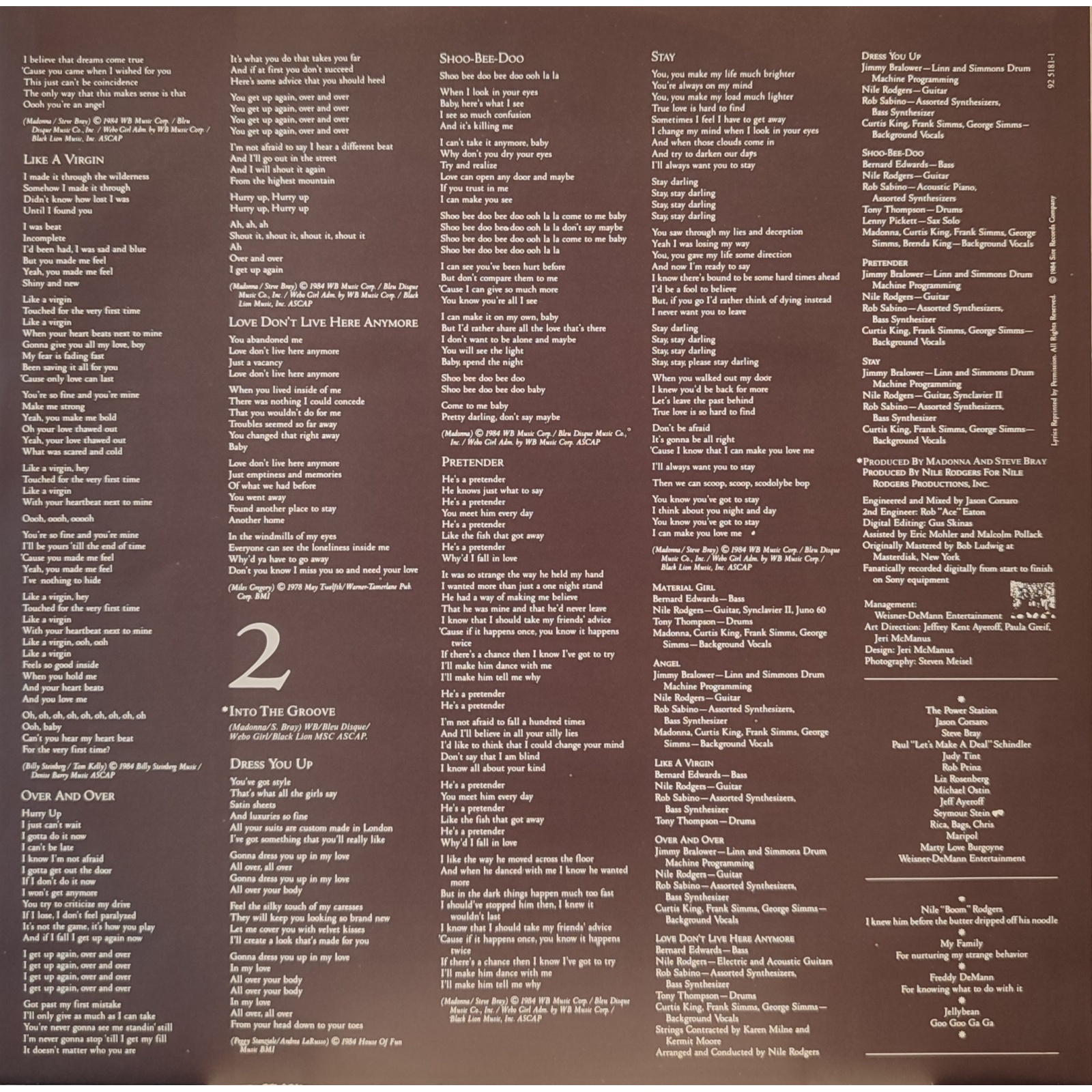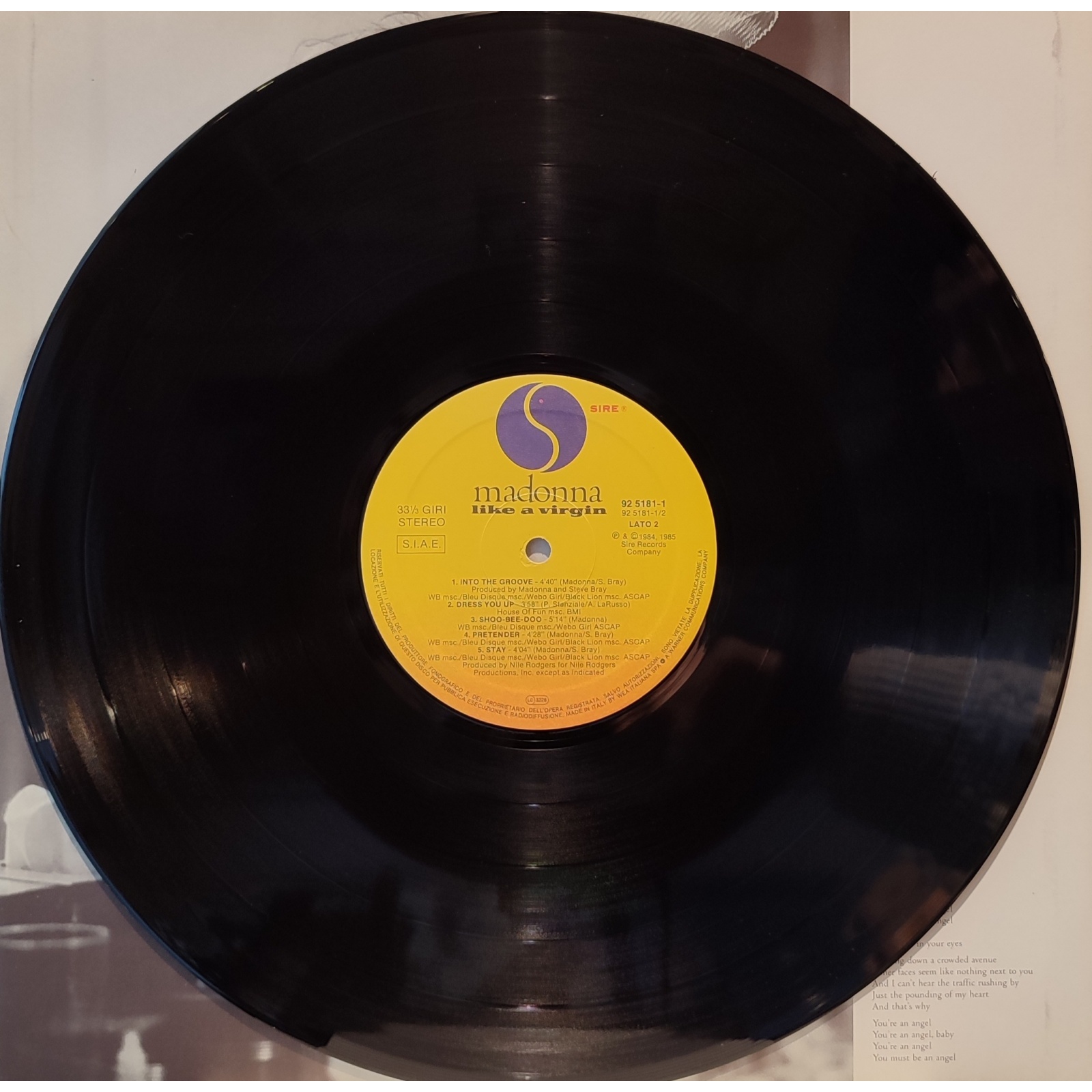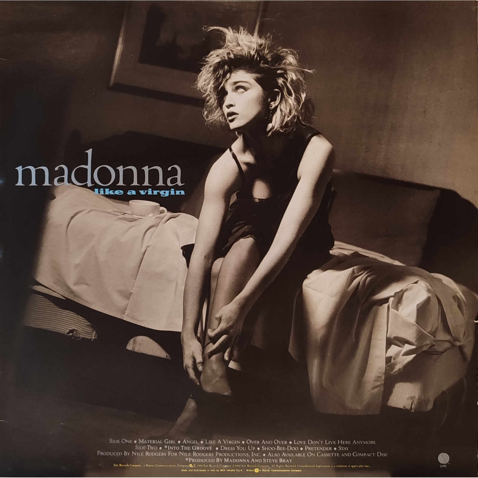 Ristampa italiana, in vinile di seconda mano, del secondo album in studio della cantante pop statunitense Madonna,"Like a Virgin".