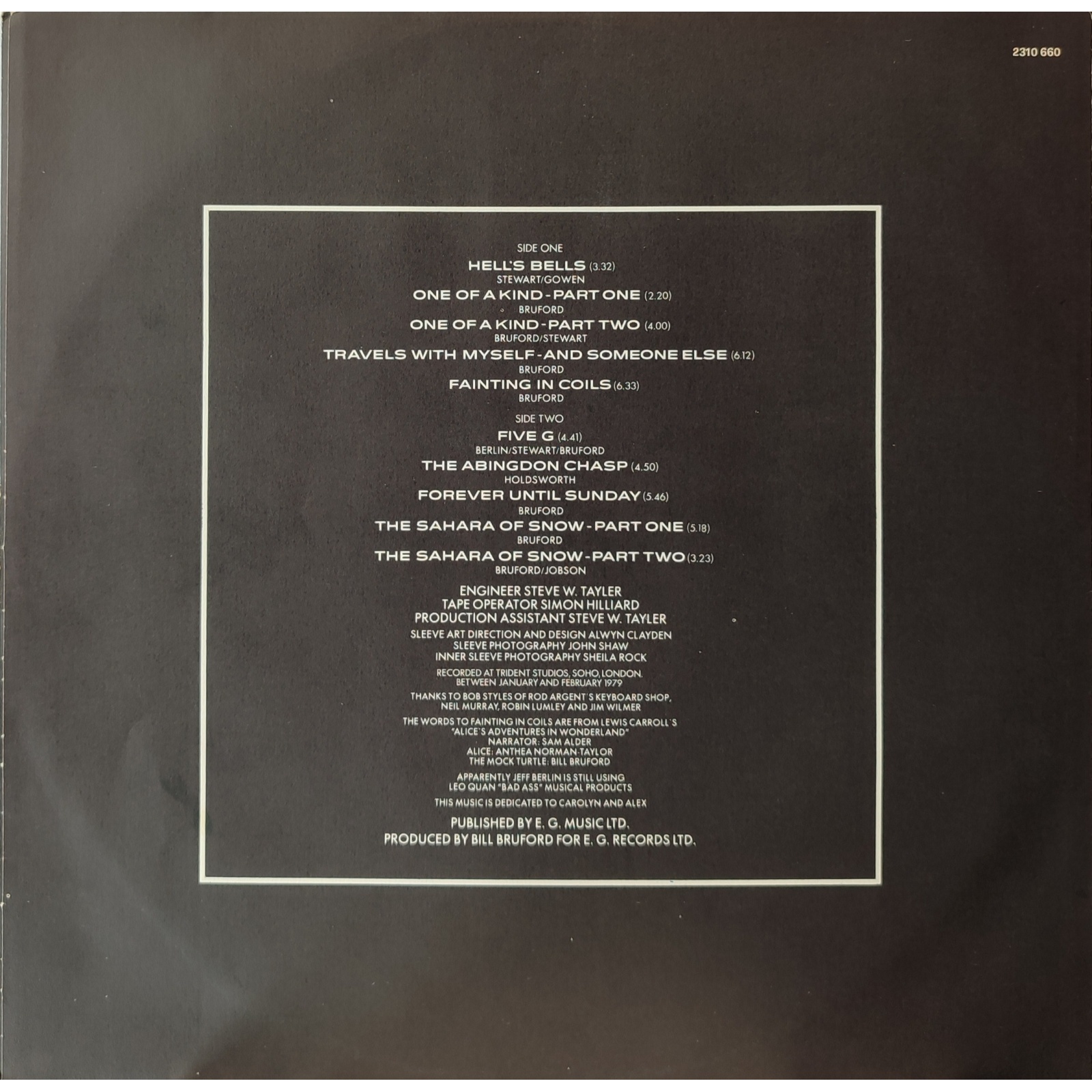 Prima edizione italiana in vinile di seconda mano del secondo album in studio di Bill Bruford.