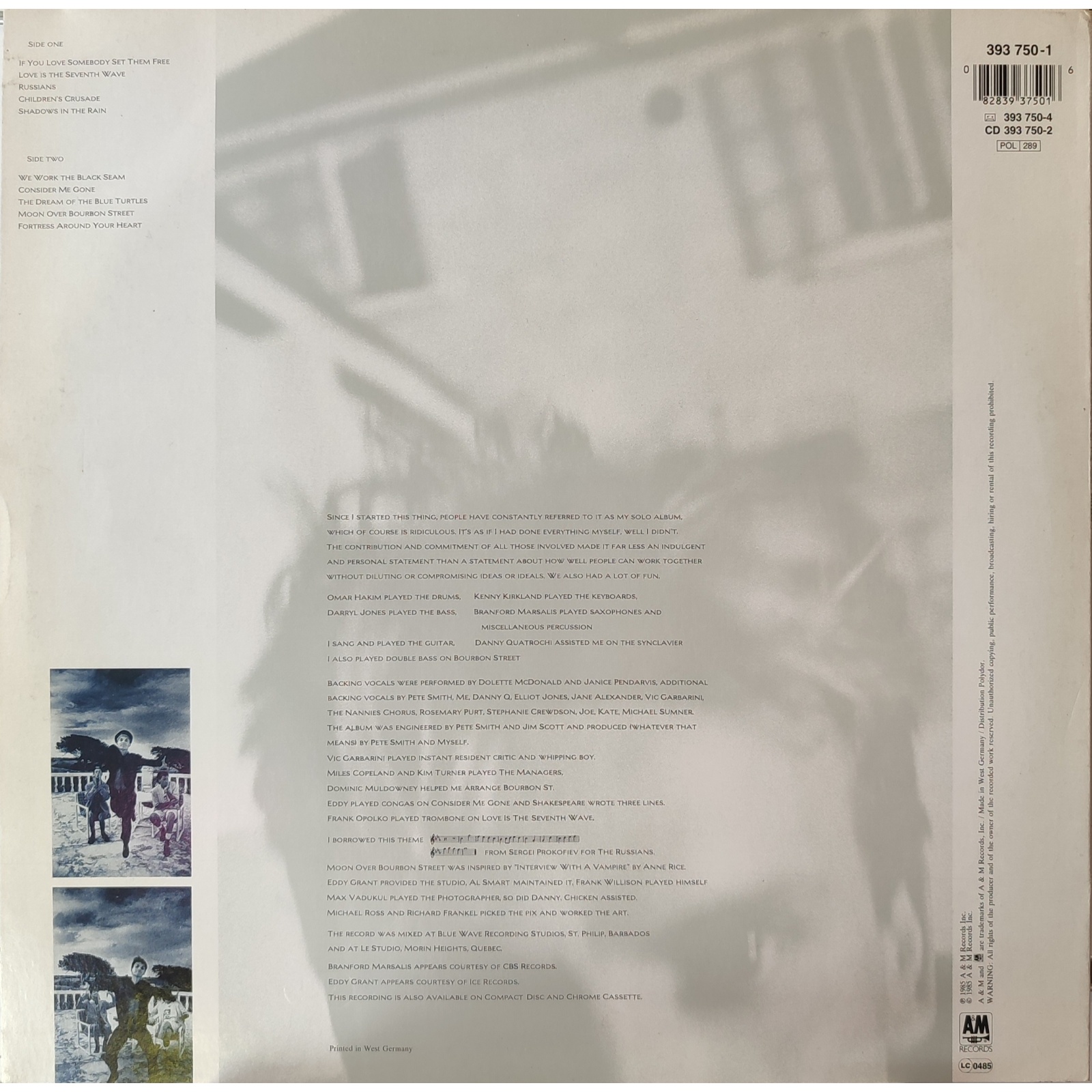 Datato 1985, etichetta A&M Records, comprensivo di inner sleeve originale e inserto testi.