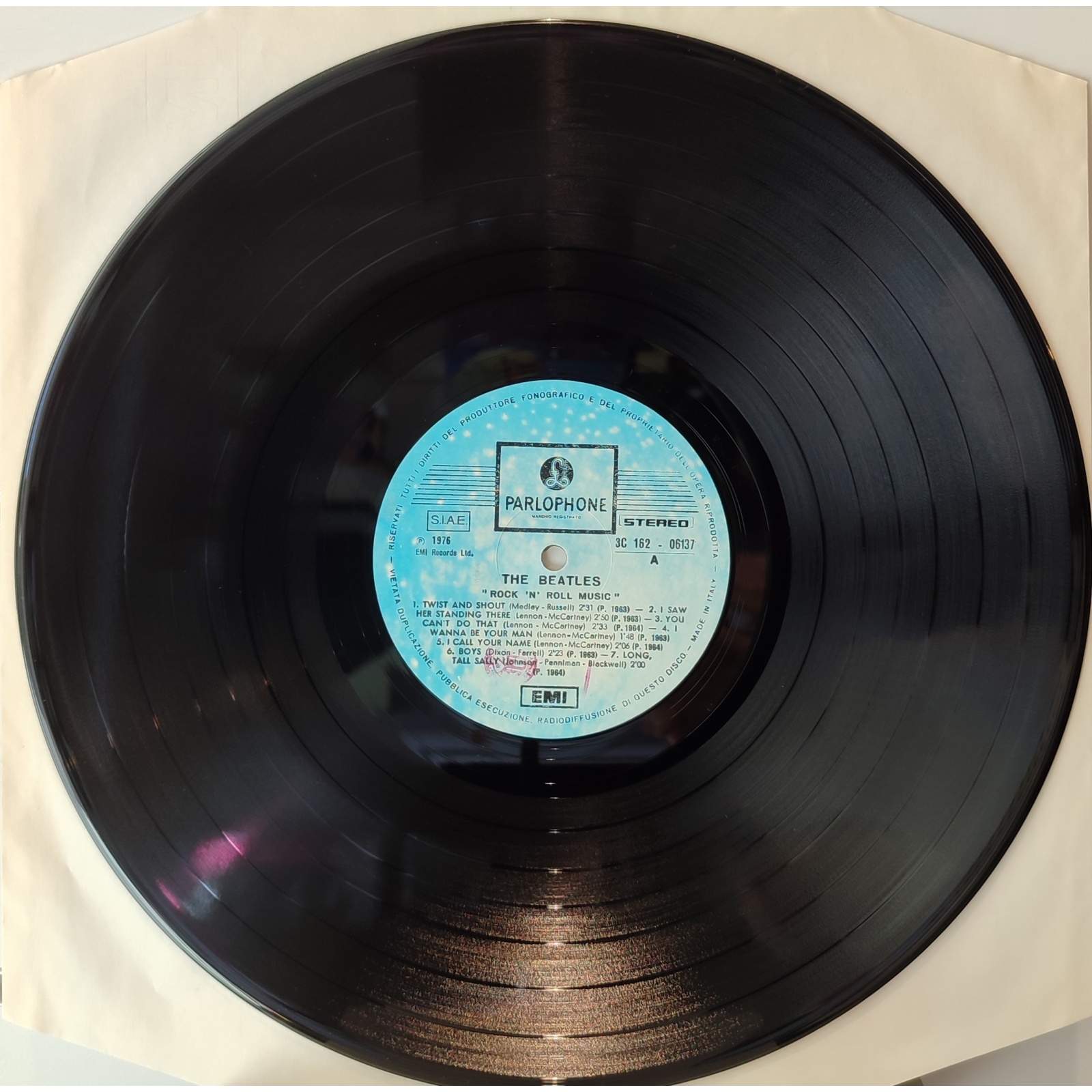 Ristampa italiana, in vinile di seconda mano, della raccolta "Rock 'n' roll music" del gruppo pop rock inglese The Beatles.