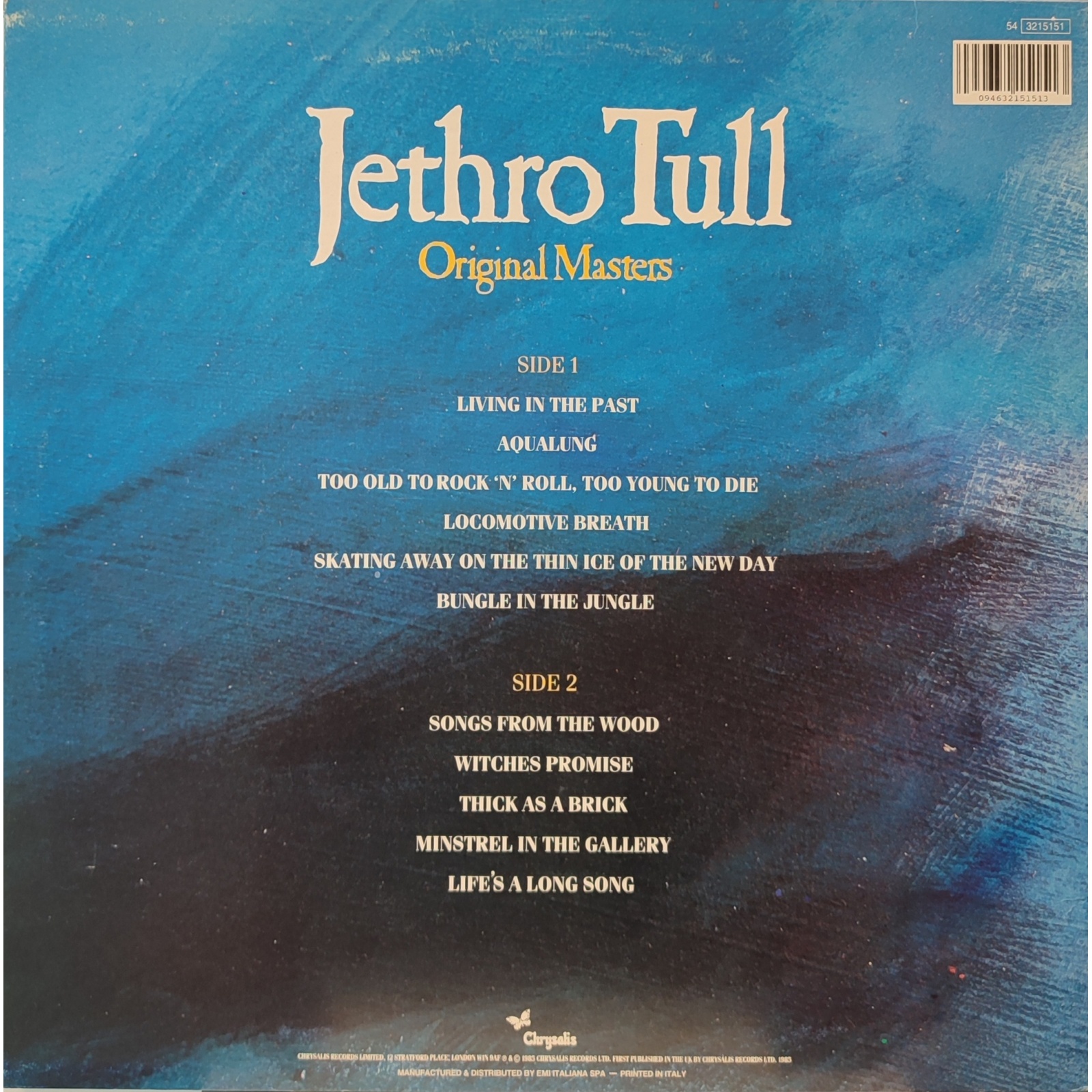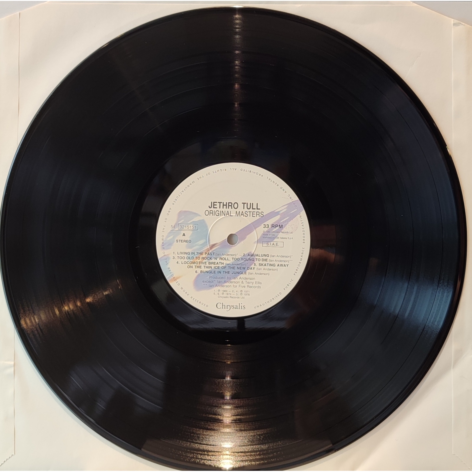 Ristampa italiana, in vinile di seconda mano, della raccolta "Original Masters" del gruppo rock progressive britannico Jethro Tull.