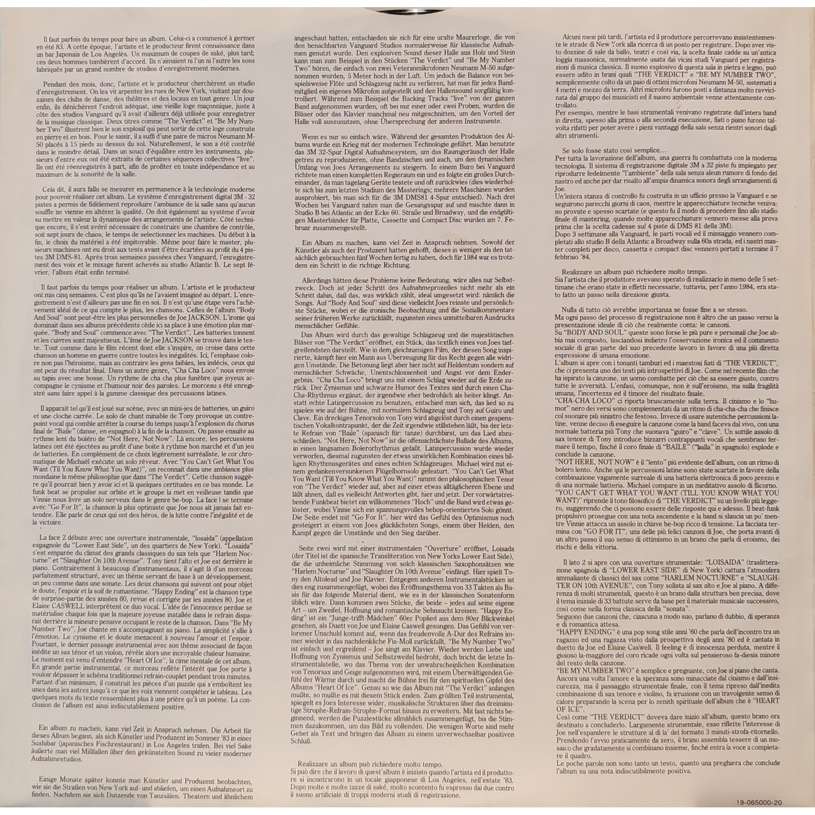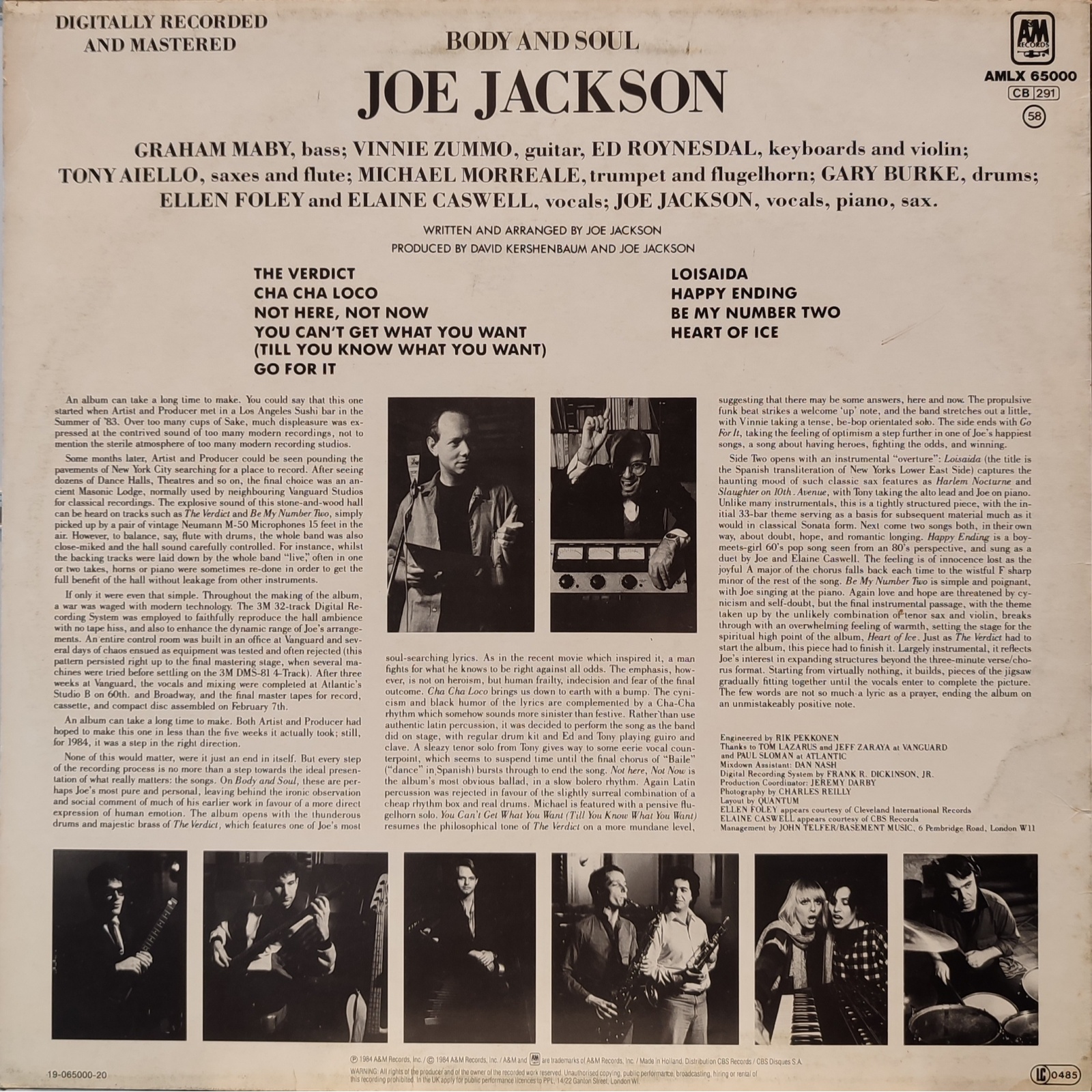 Prima edizione olandese, in vinile di seconda mano, del settimo album in studio del cantautore, compositore e polistrumentista britannico Joe Jackson,"Body and soul".