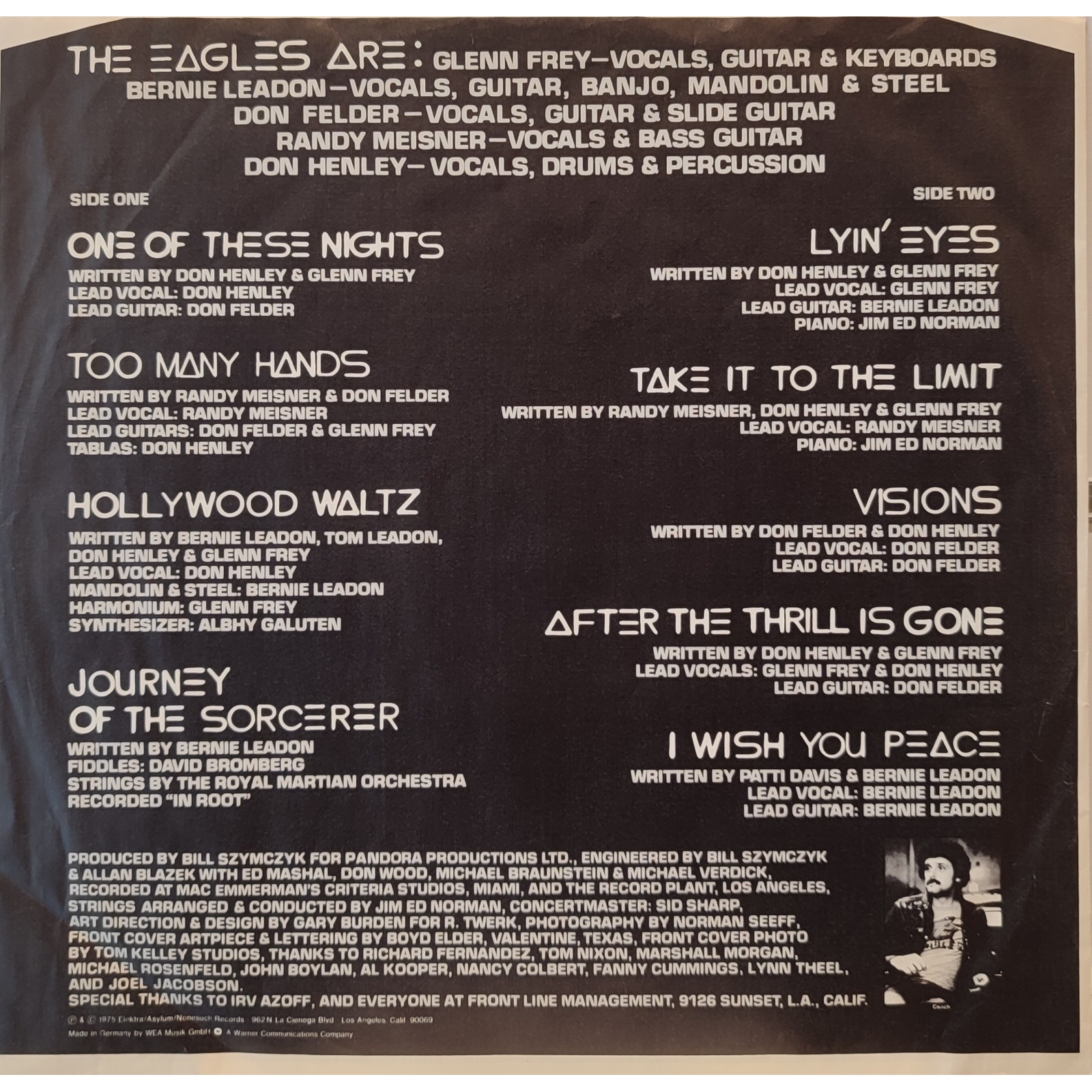 Dall'album sono estratti tre singoli: "Lyin' Eyes", "One of These Nights" e "Take It to the Limit".
