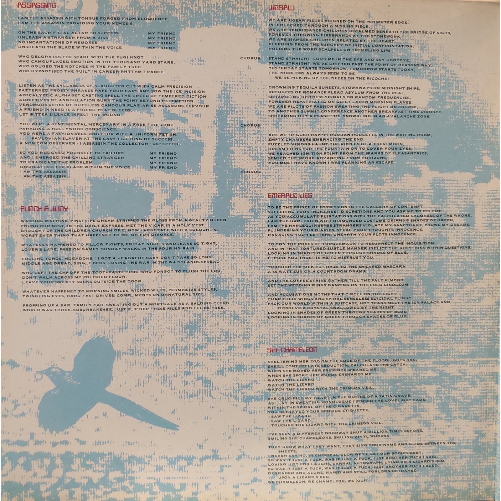 Il primo singolo "Punch and Judy", il secondo "Assassing", e "Fugazi" sarebbero poi diventati veri e propri classici del gruppo.