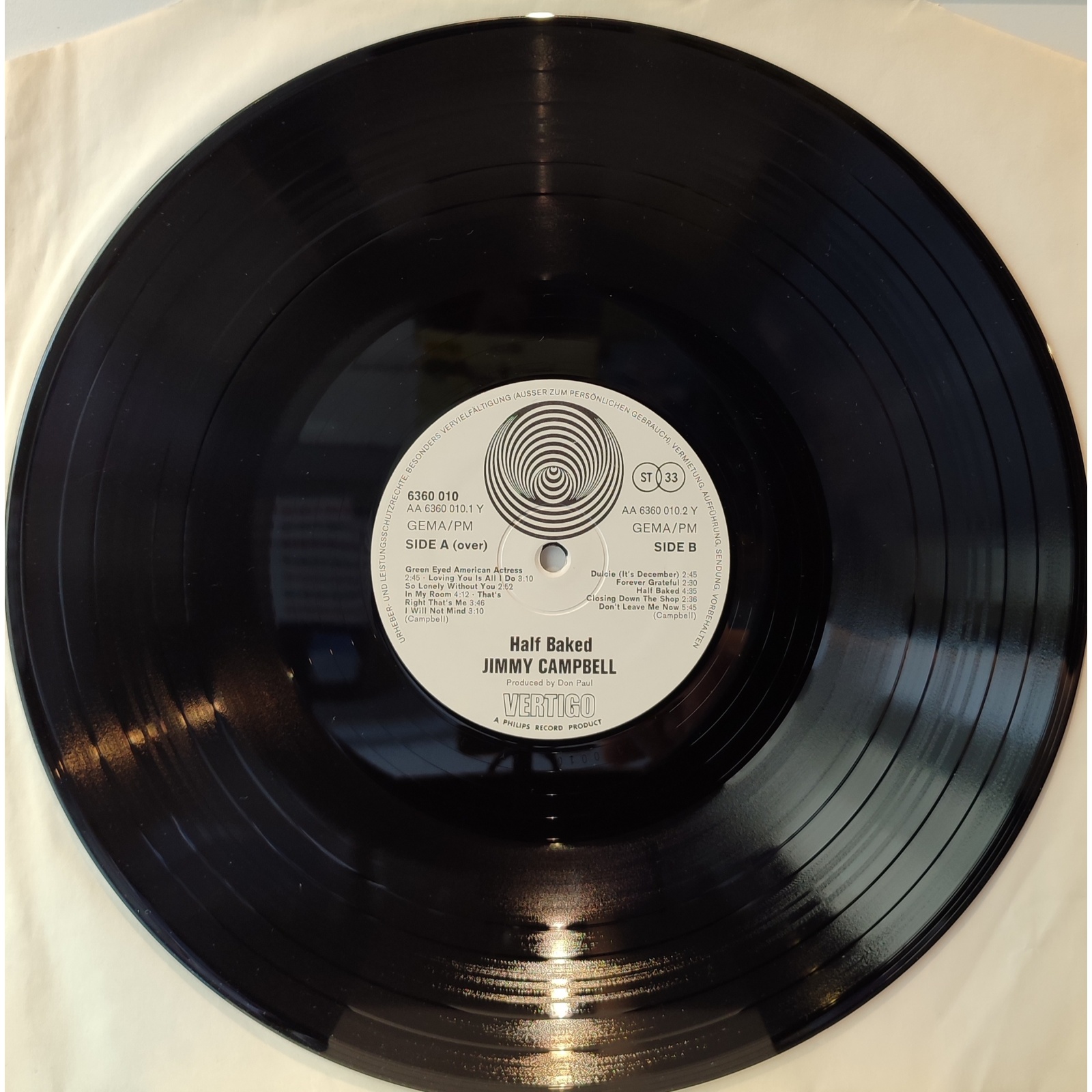 Prima edizione tedesca in vinile di seconda mano del secondo album da solista del cantautore inglese Jimmy Campbell, "Half Baked".