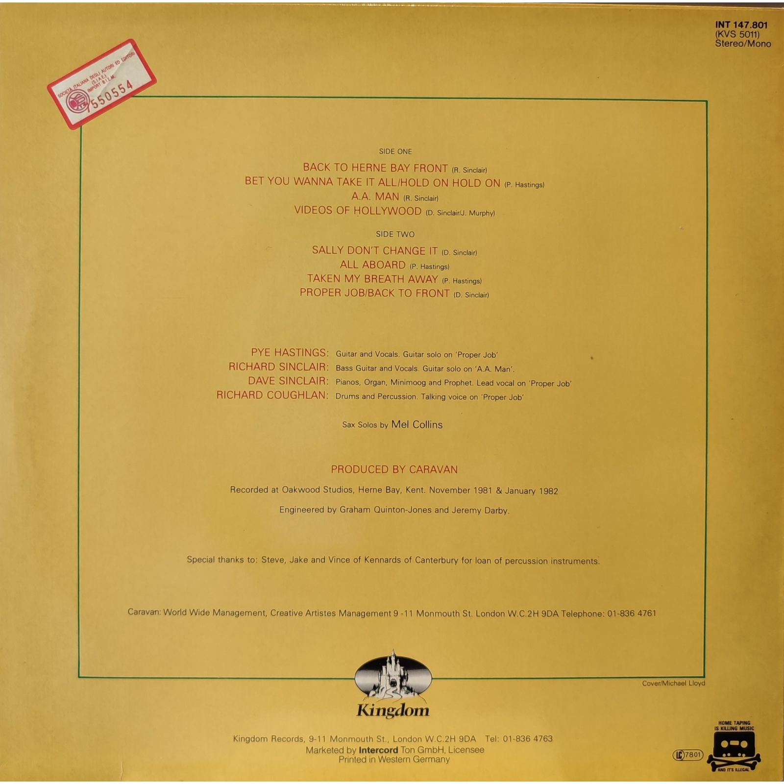 Datato 1982, etichetta Kingdom.