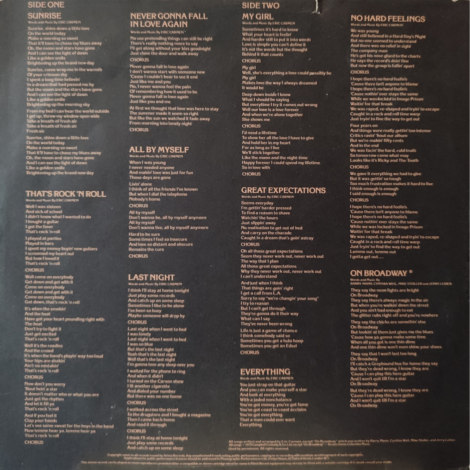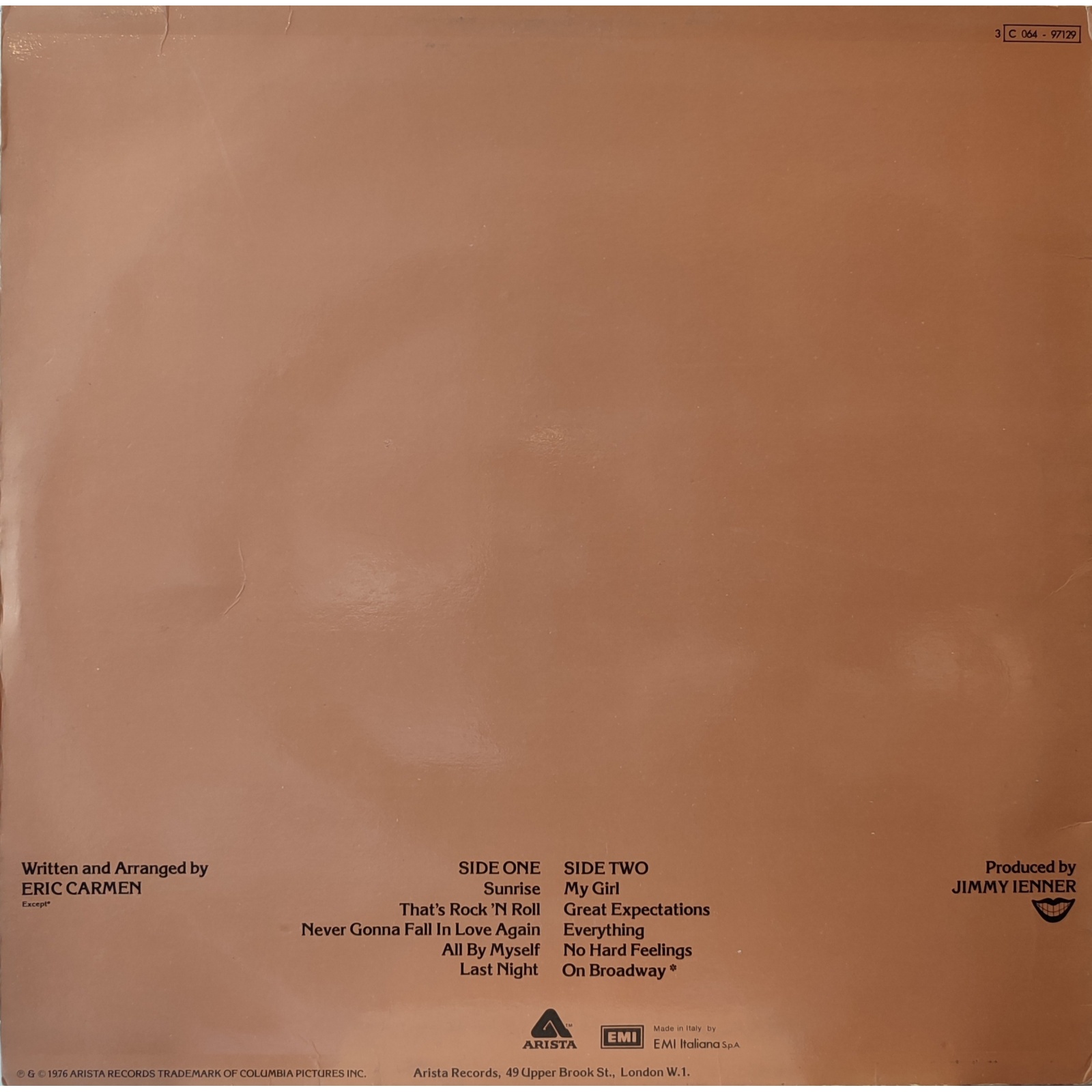 Prima edizione italiana in vinile di seconda mano del primo album da solista del cantautore statunitense Eric Carmen.