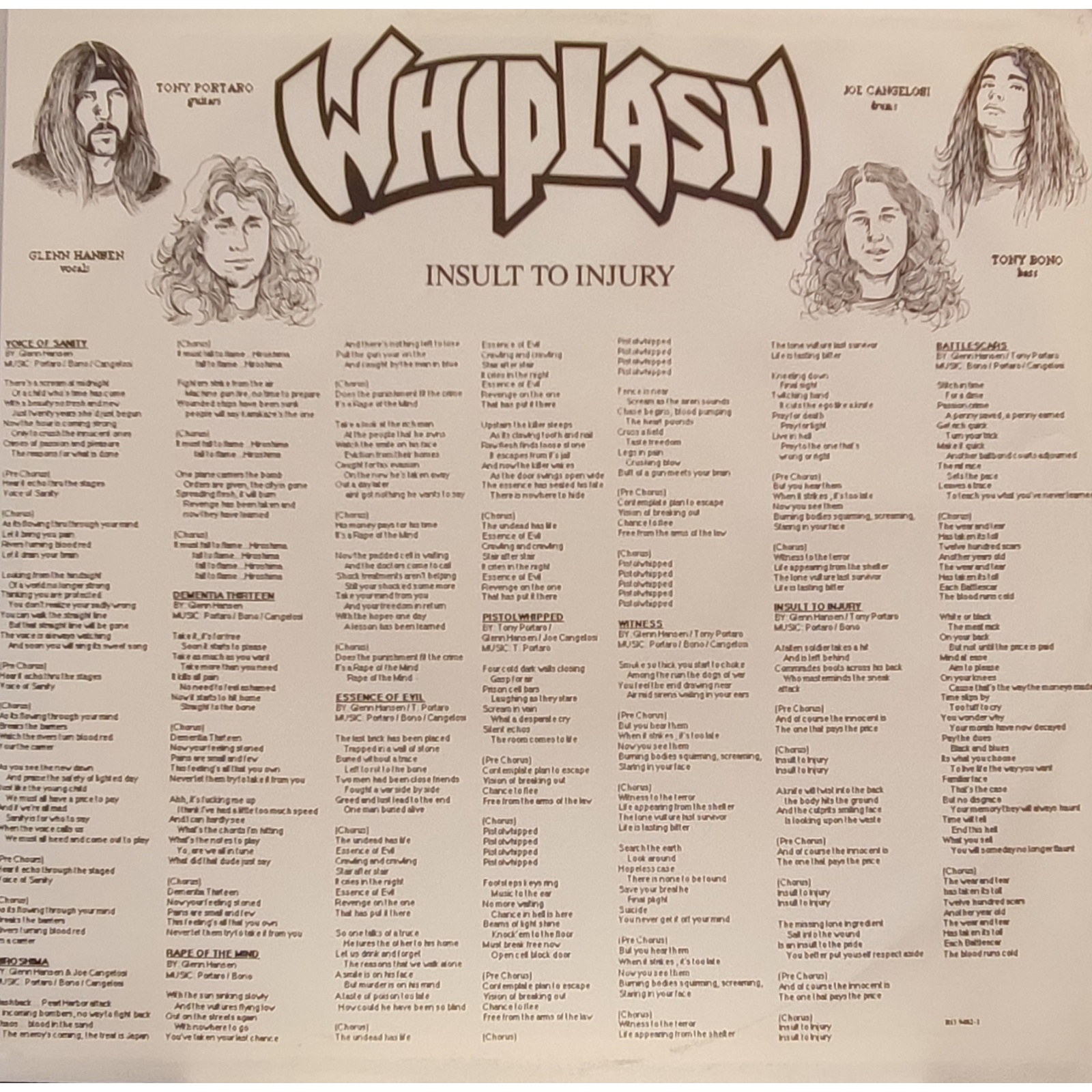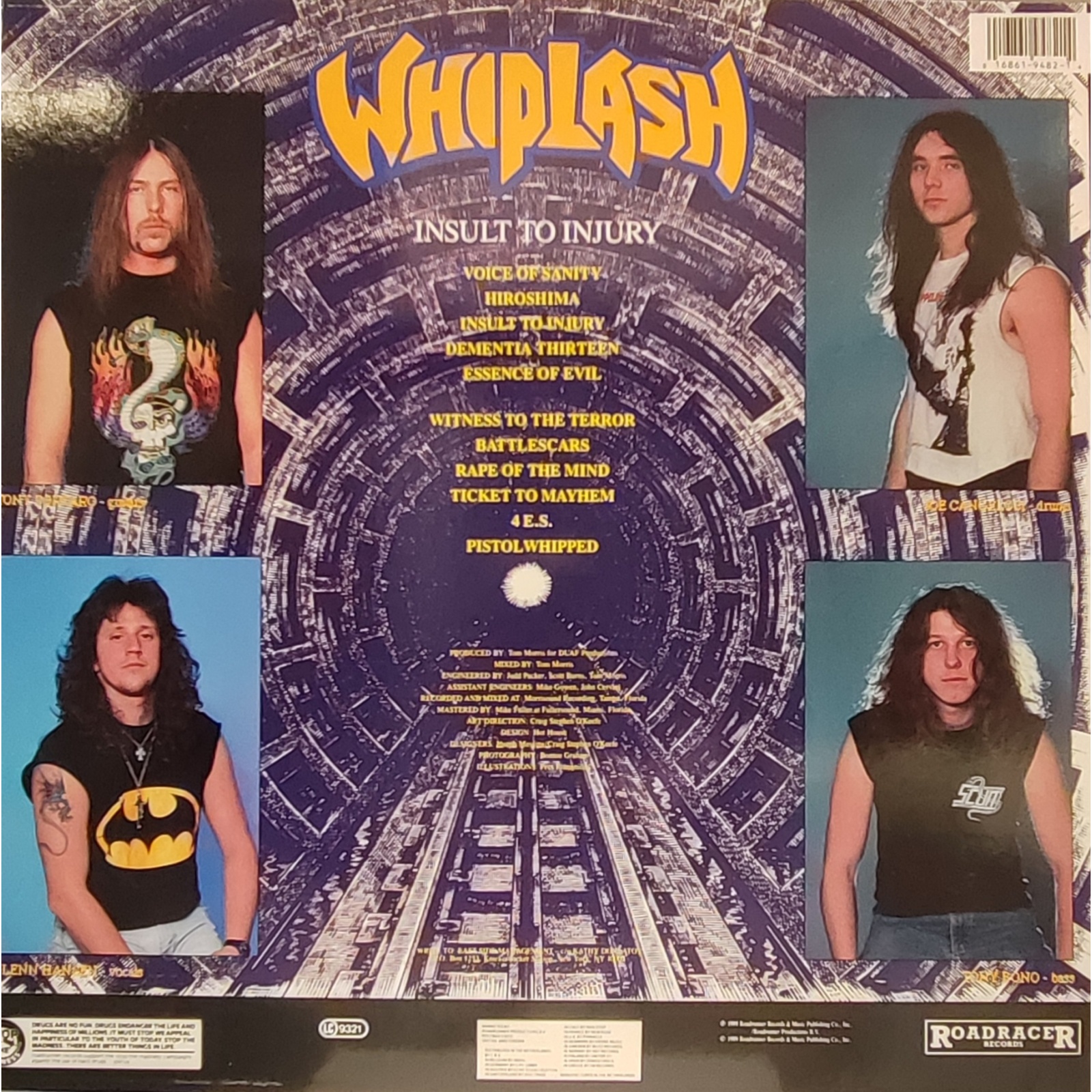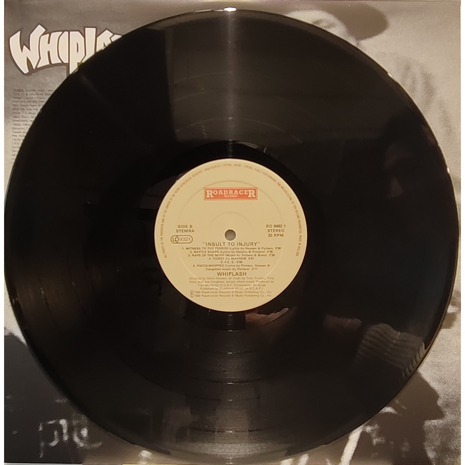 Prima edizione olandese, in vinile di seconda mano, del terzo album in studio del gruppo thrash metal statunitense Whiplash,"Insult to injury".