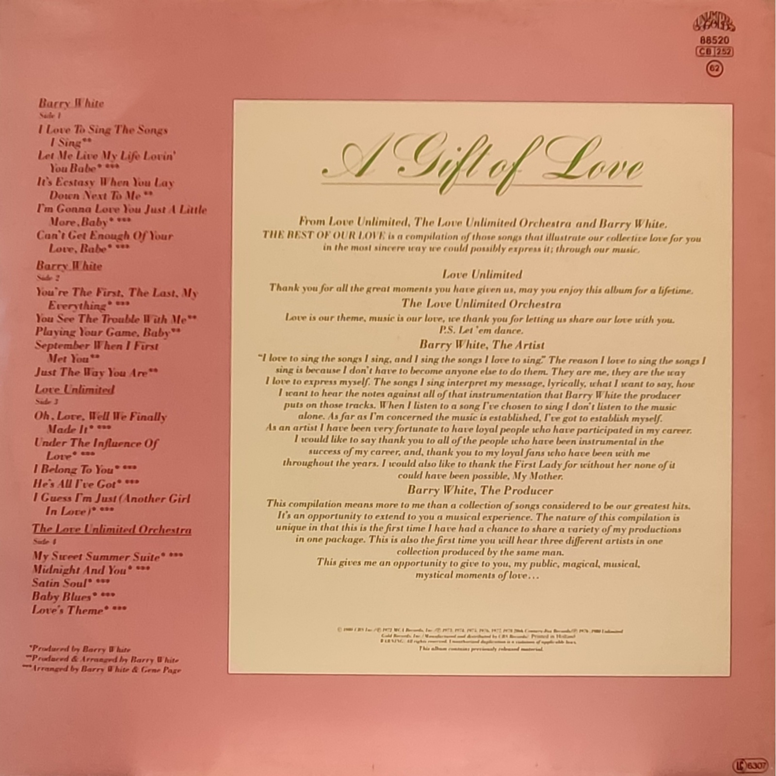Datato 1985, etichetta Unlimited Gold, doppio LP gatefold.