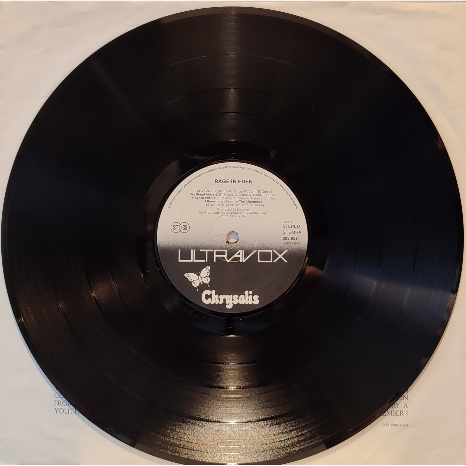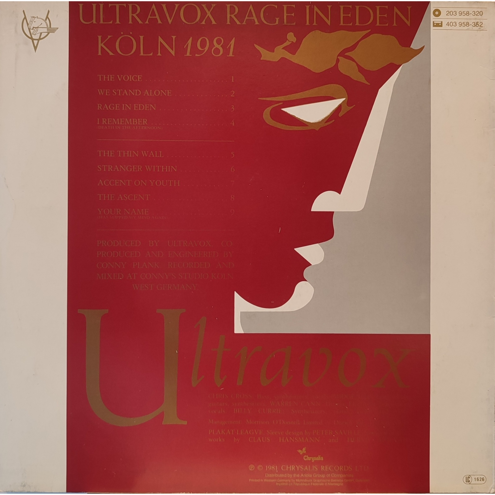 Prima edizione tedesca, in vinile di seconda mano, del quinto album in studio del gruppo new wave inglese Ultravox,"Rage in eden".