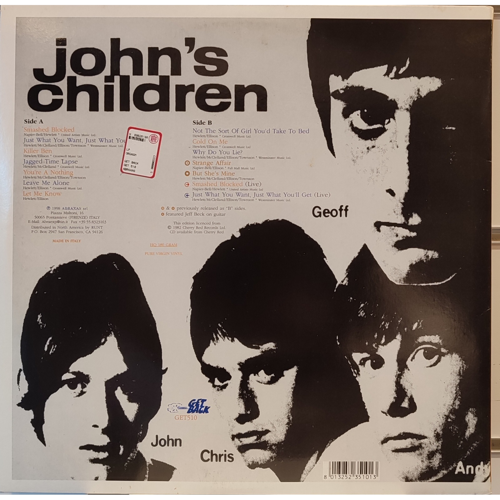 Datato 1998, etichetta Get Back, gatefold.