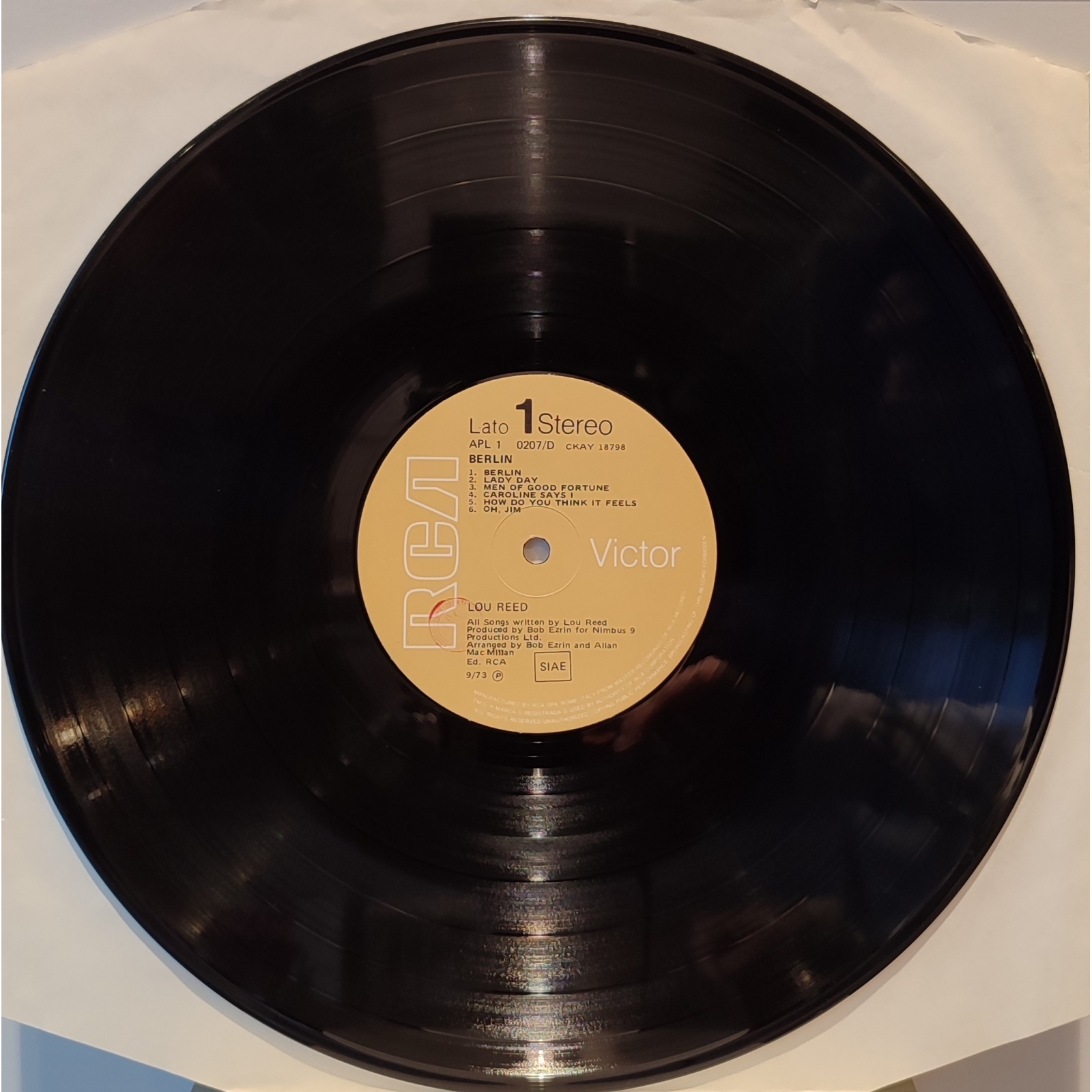 Ristampa italiana, in vinile di seconda mano, del terzo album da solista del cantautore statunitense Lou Reed, "Berlin".