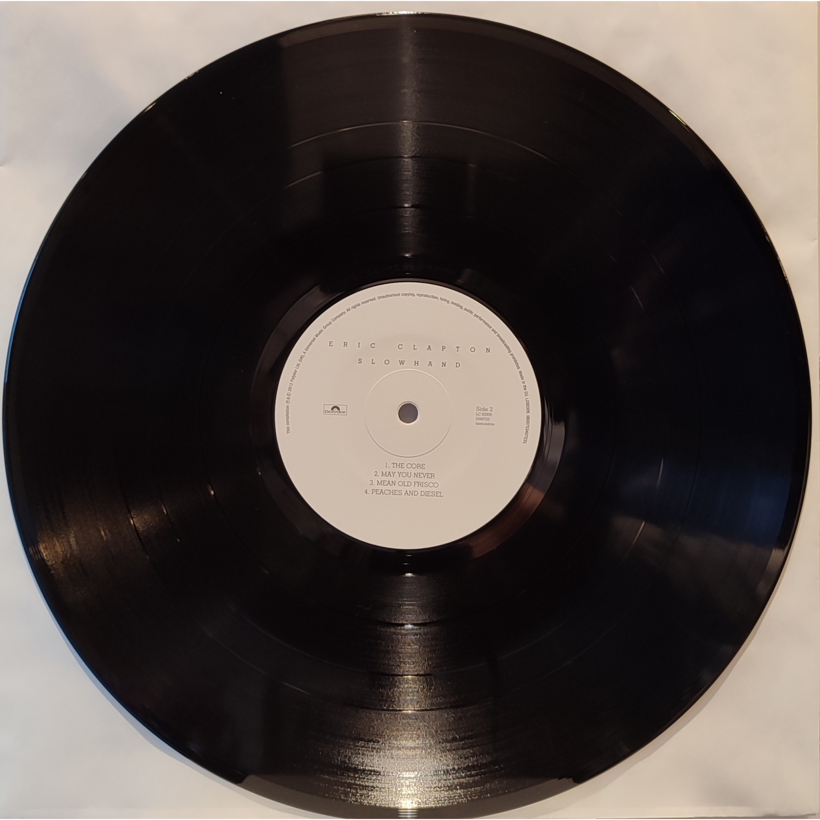 Ristampa europea, in vinile di seconda mano, dell'album "Slowhand" del chitarrista e cantante britannico Eric Clapton.