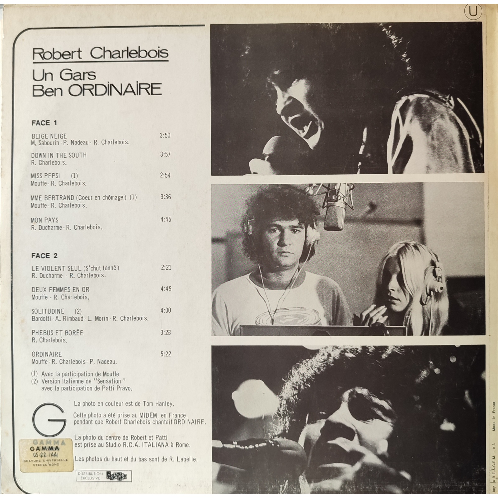 Prima edizione francese in vinile di seconda mano dell'album "Un gars ben ordinaire" del cantautore canadese Robert Charlebois.