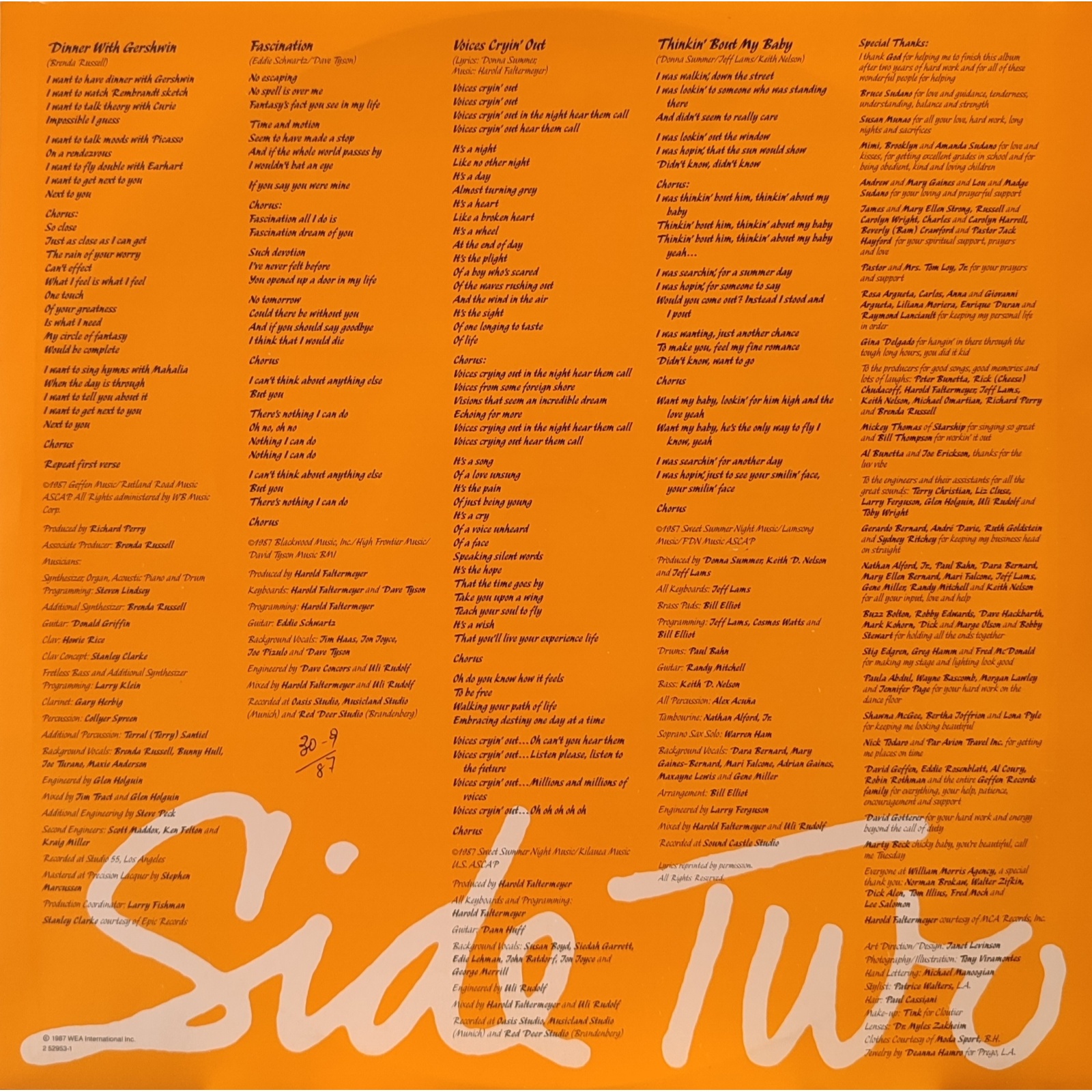 Datato 1987, etichetta Warner Bros, comprensivo di inner sleeve originale con testi.