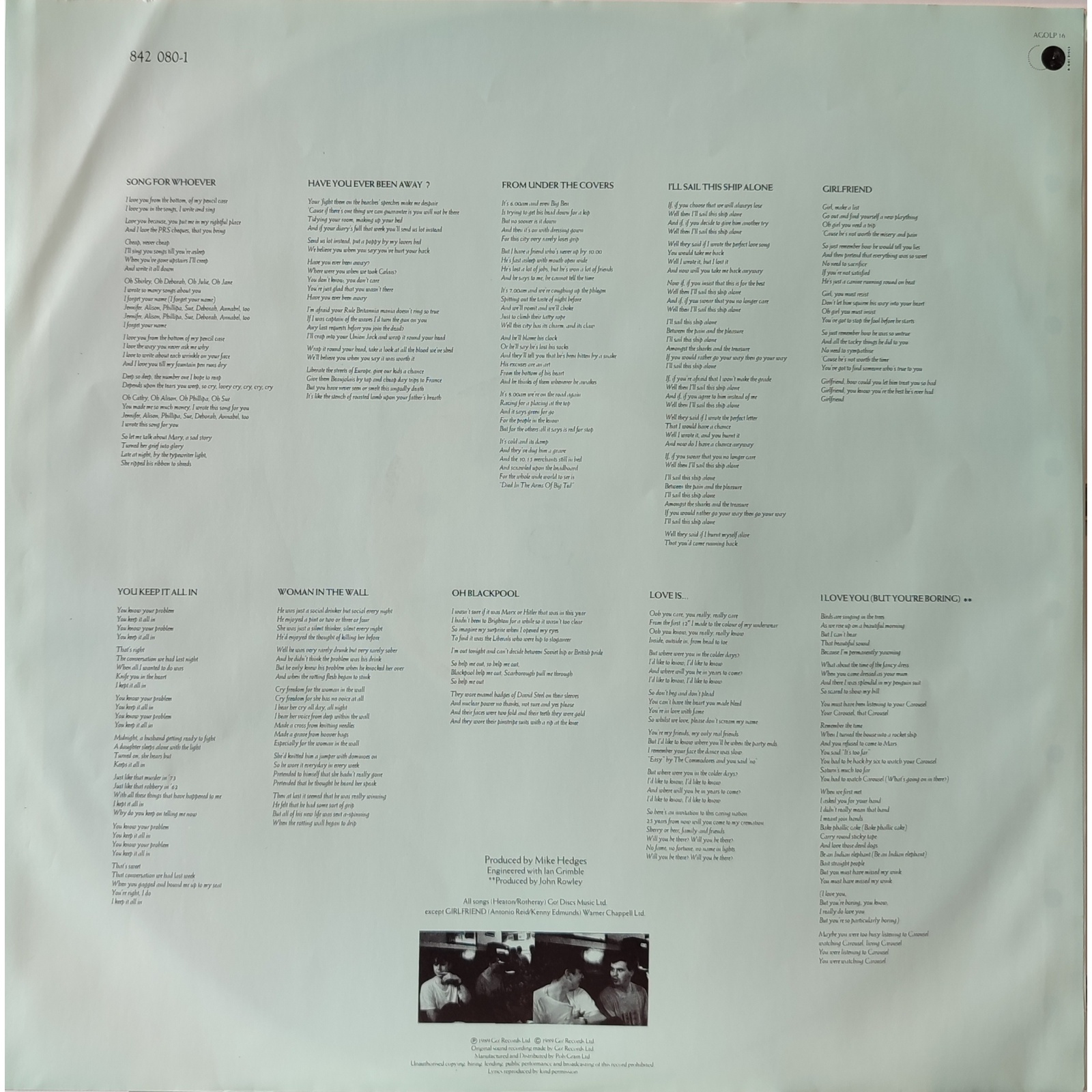 Datato 1989, etichetta London, comprensivo di inner sleeve originale con foto e testi.