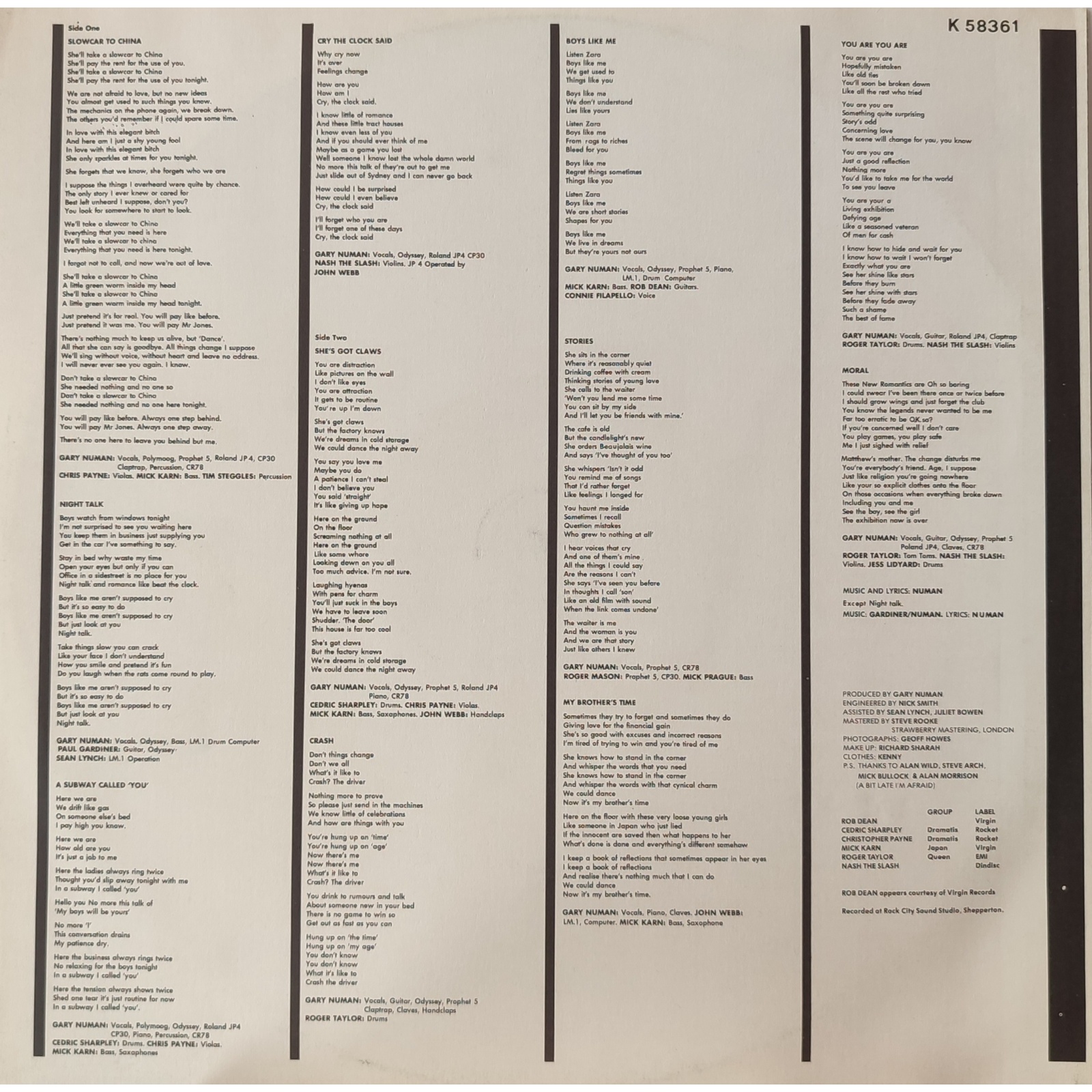 Fra i musicisti che hanno collaborato spiccano i nomi di Mick Karn dei Japan e Roger Taylor dei Queen, oltre ai collaboratori storici dai tempi dei Tubeway Army.