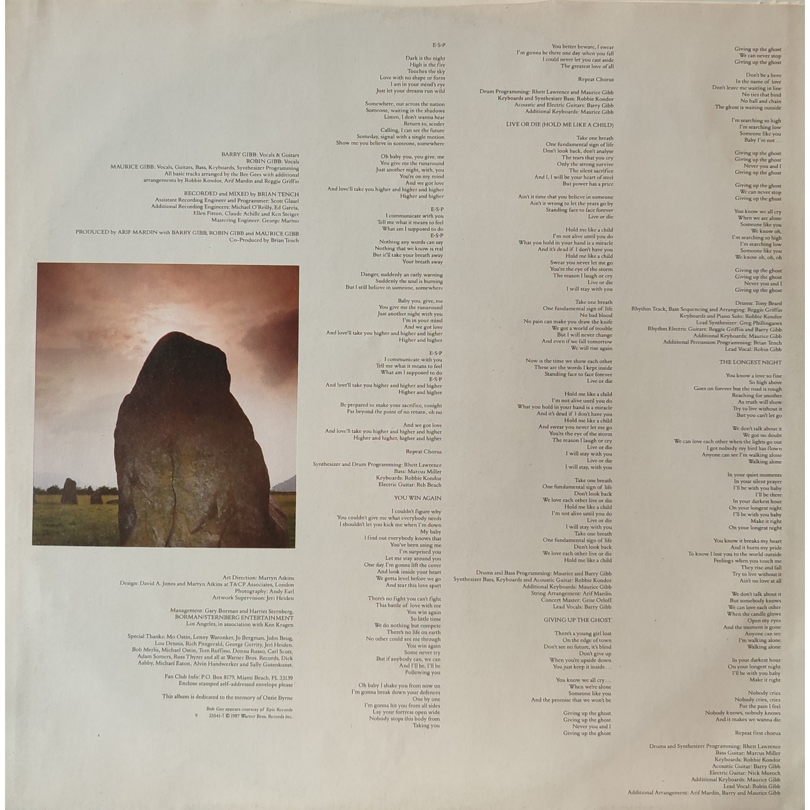 Datato 1987, etichetta Warner Bros, comprensivo di inner sleeve originale con testi.