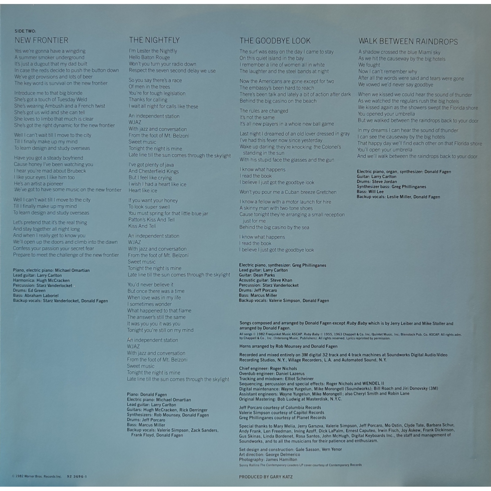 Il disco riprende molte delle linee melodiche del gruppo di provenienza di Fagen, gli Steely Dan e in particolare del loro ultimo album "Gaucho" pubblicato due anni prima.