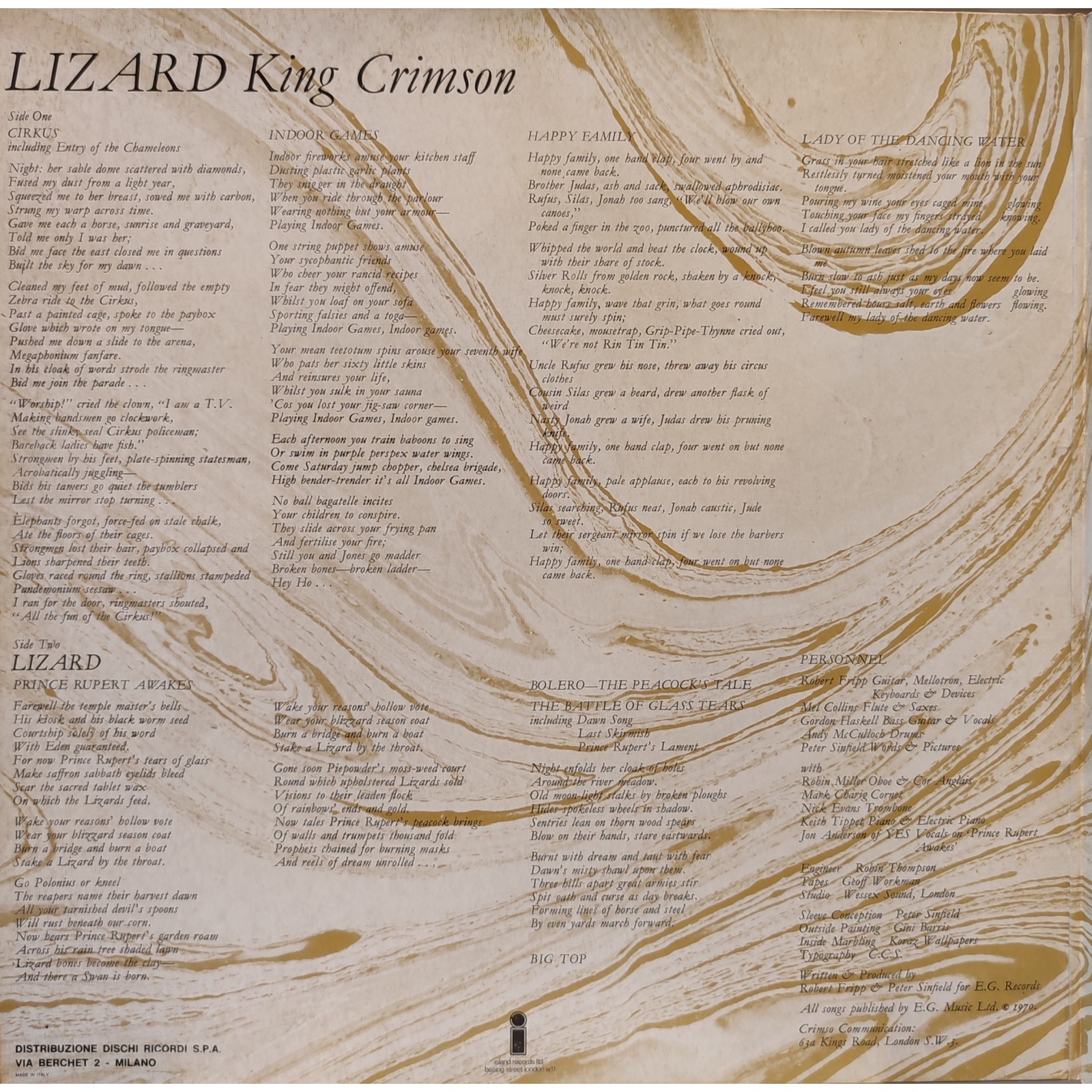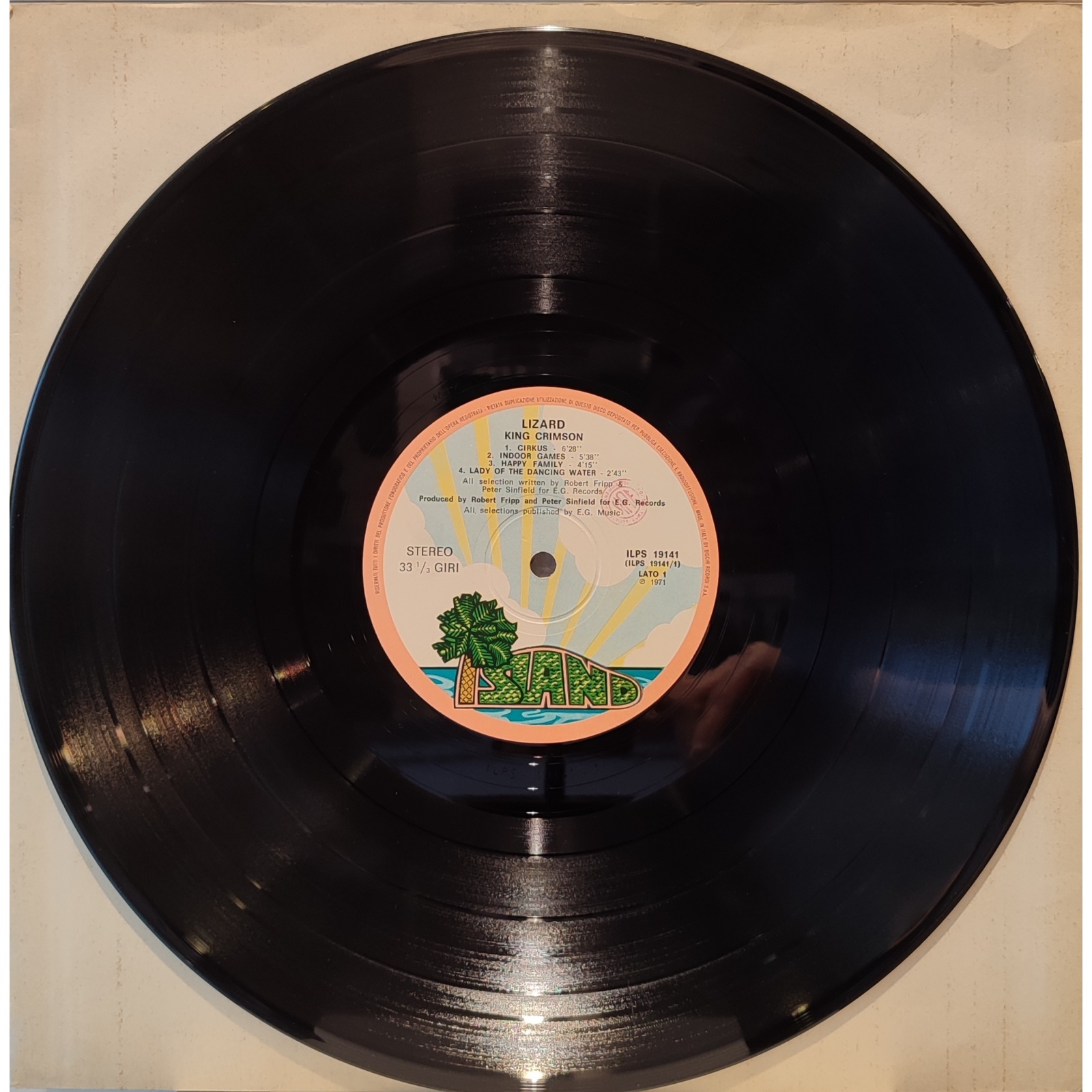 Prima edizione italiana, in vinile di seconda mano, del terzo album in studio del gruppo progressive britannico King Crimson,"Lizard".