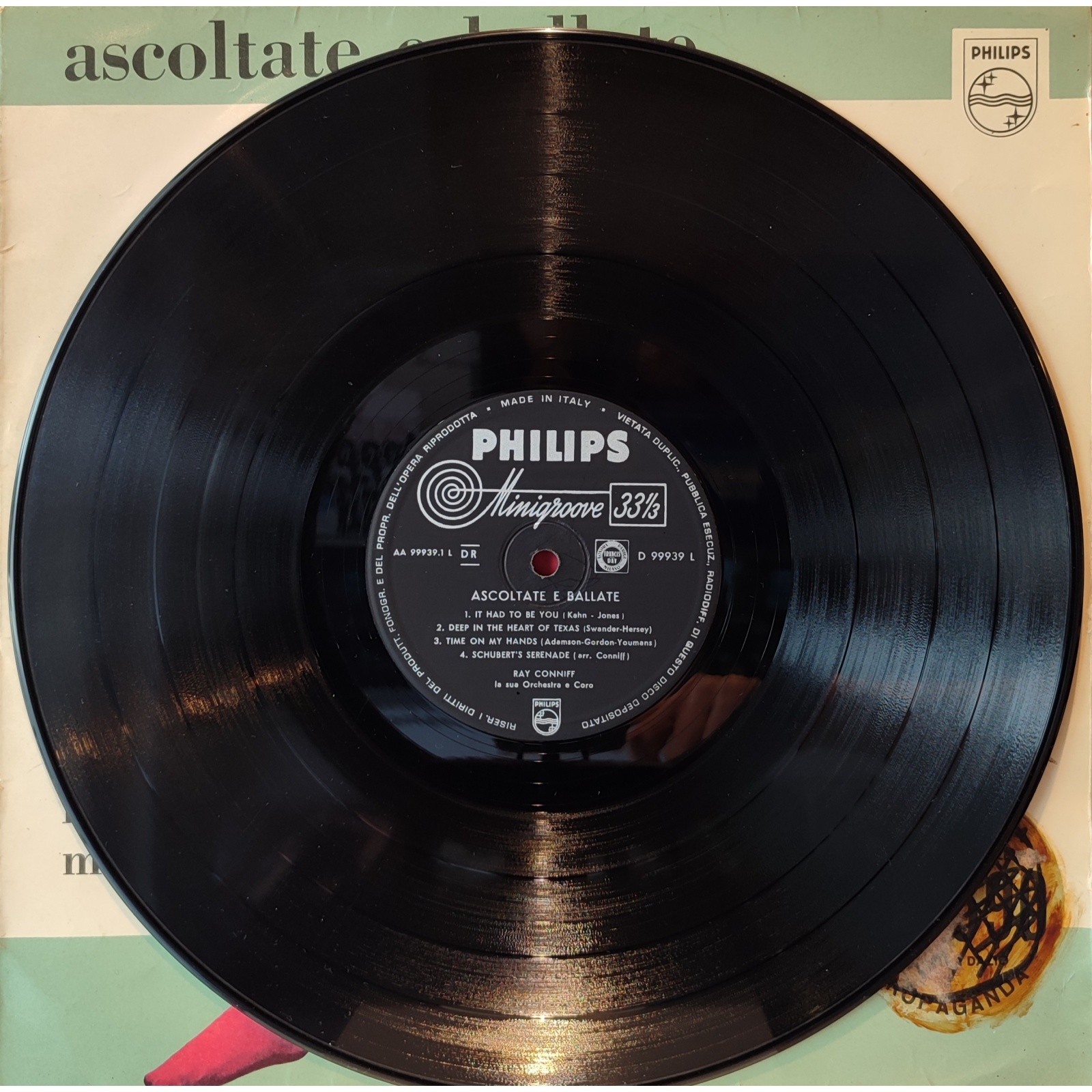 Prima edizione italiana in vinile di seconda mano della raccolta "Ascoltate e ballate" del compositore statunitense Easy Listening Ray Conniff.
