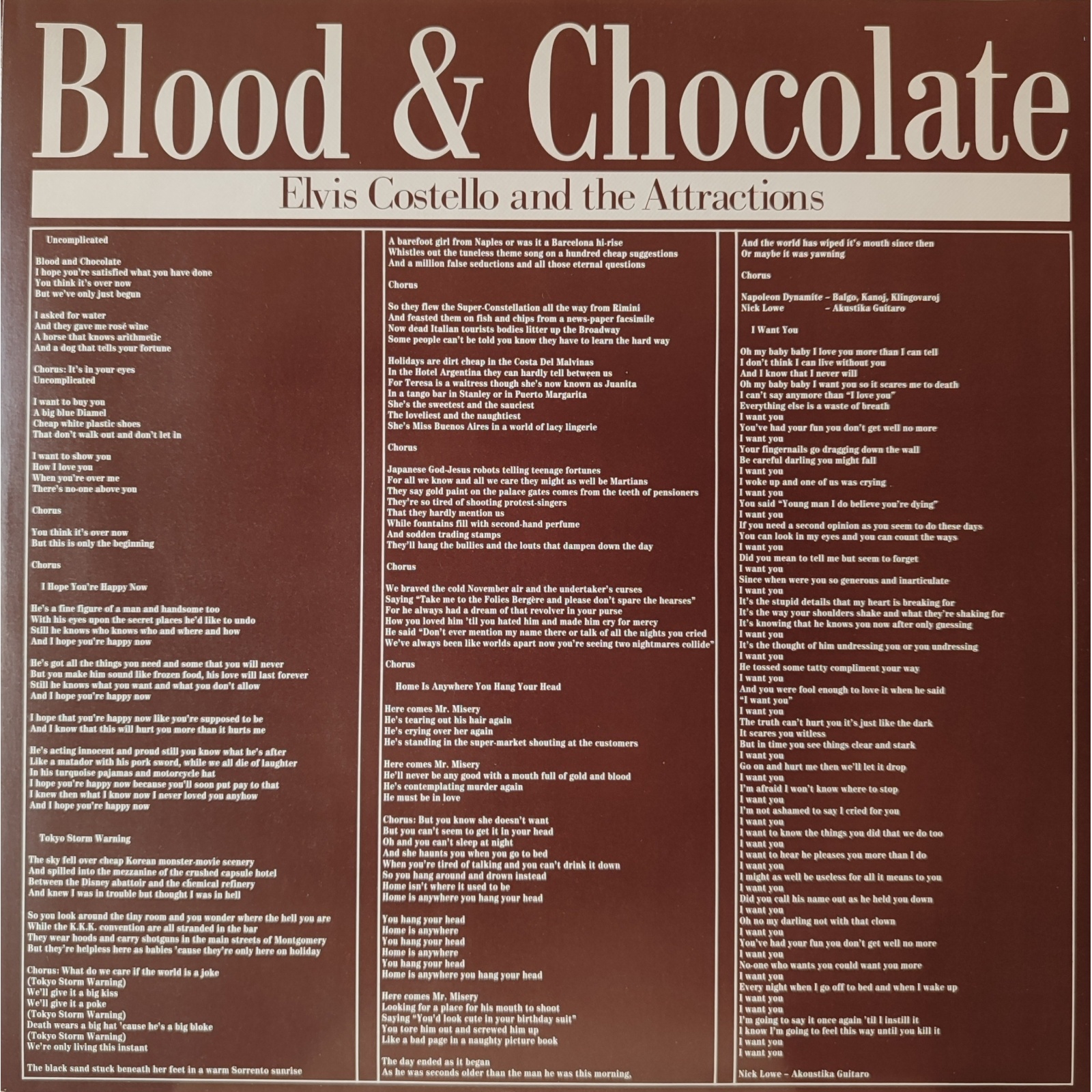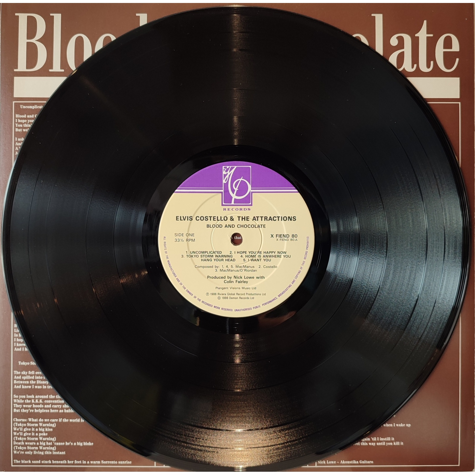 Prima edizione inglese in vinile di seconda mano dell'undicesimo album in studio del cantautore inglese Elvis Costello, "Blood and chocolate".