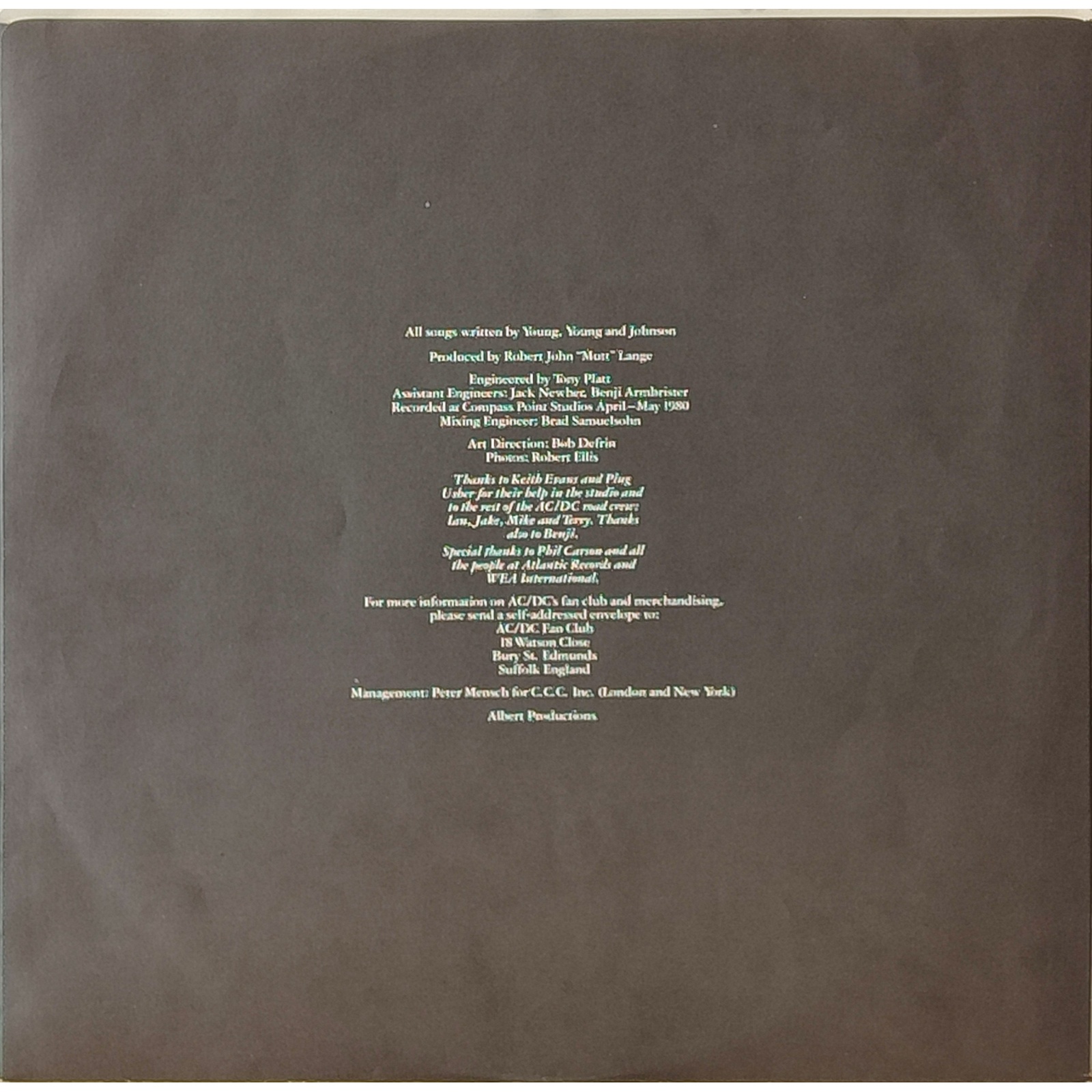 Rara prima edizione canadese, in vinile di seconda mano, del settimo album in studio del gruppo hard rock australiano AC/DC.