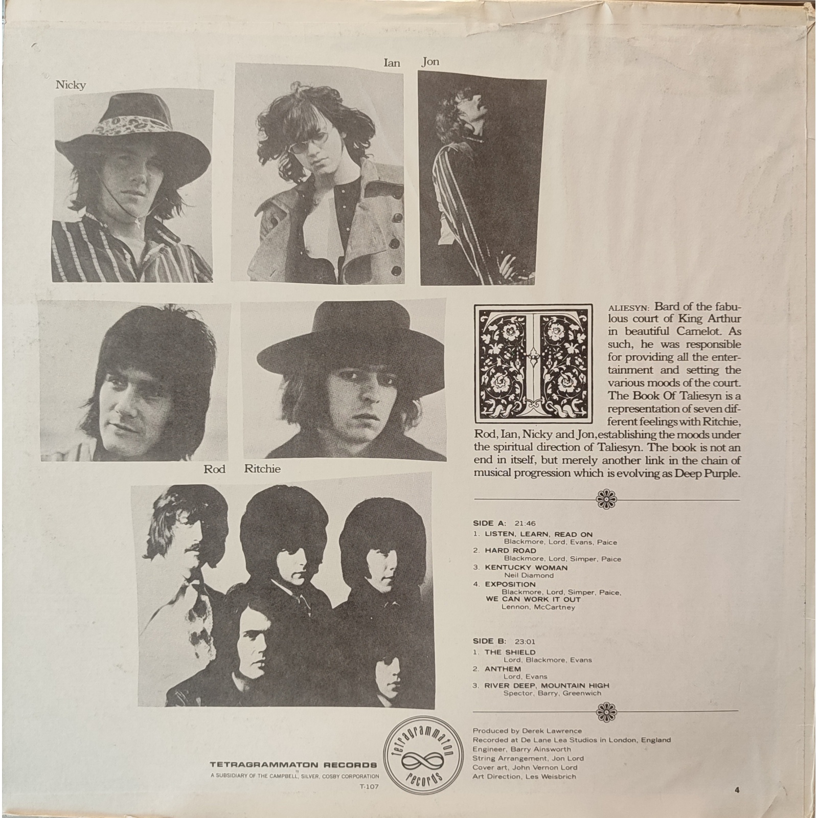 Splendida prima edizione americana in vinile di seconda mano del secondo album in studio dei Deep Purple,"The book of Taliesyn".