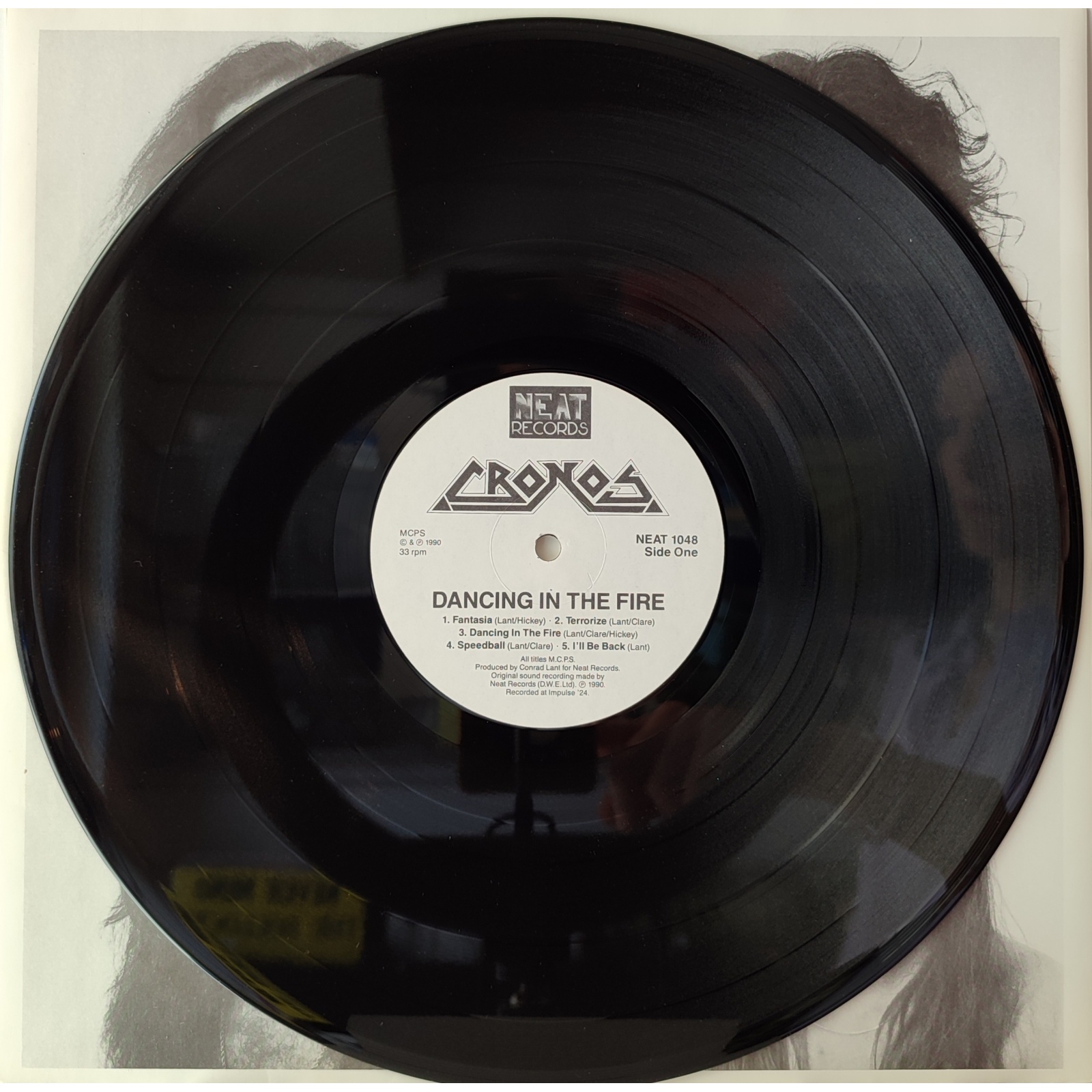 Prima edizione inglese in vinile di seconda mano del primo album in studio del gruppo inglese heavy metal Cronos, "Dancing in the Fire".
