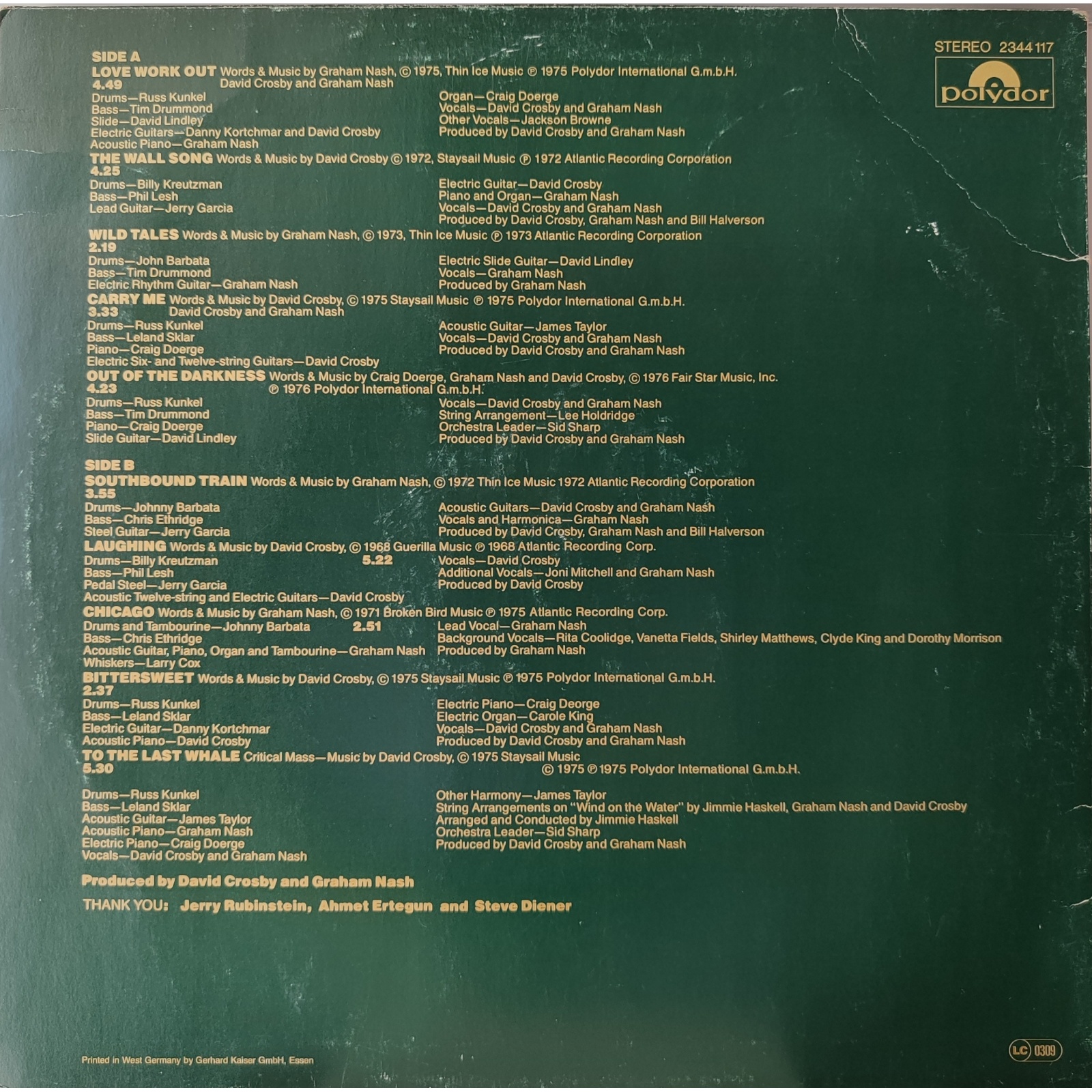 Prima edizione tedesca in vinile di seconda mano della raccolta "The best of Crosby & Nash" del duo folk rock formato da David Crosby e Graham Nash.