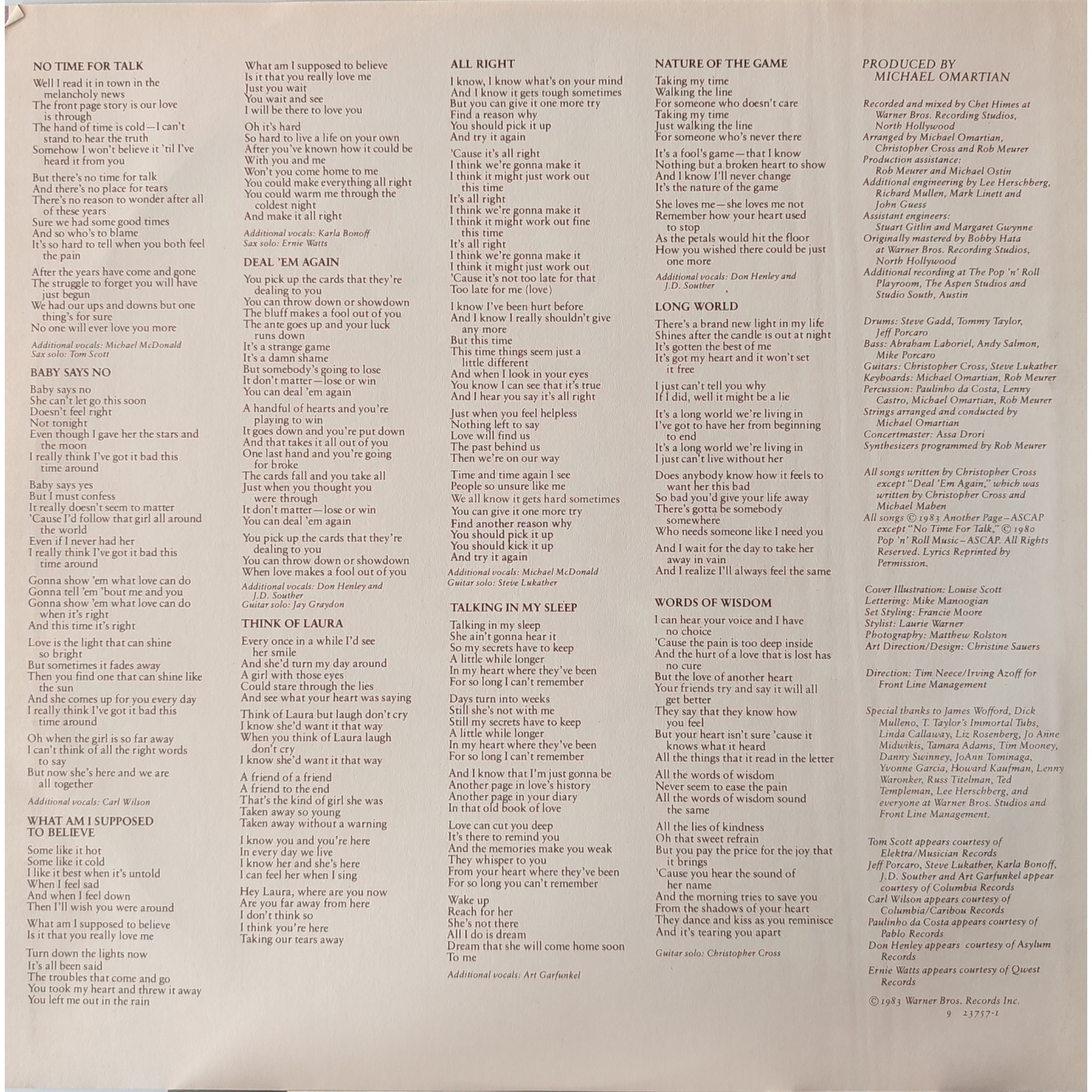 Prima edizione italiana in vinile di seconda mano del secondo album in studio del cantautore statunitense soft rock Christopher Cross,"Another page".