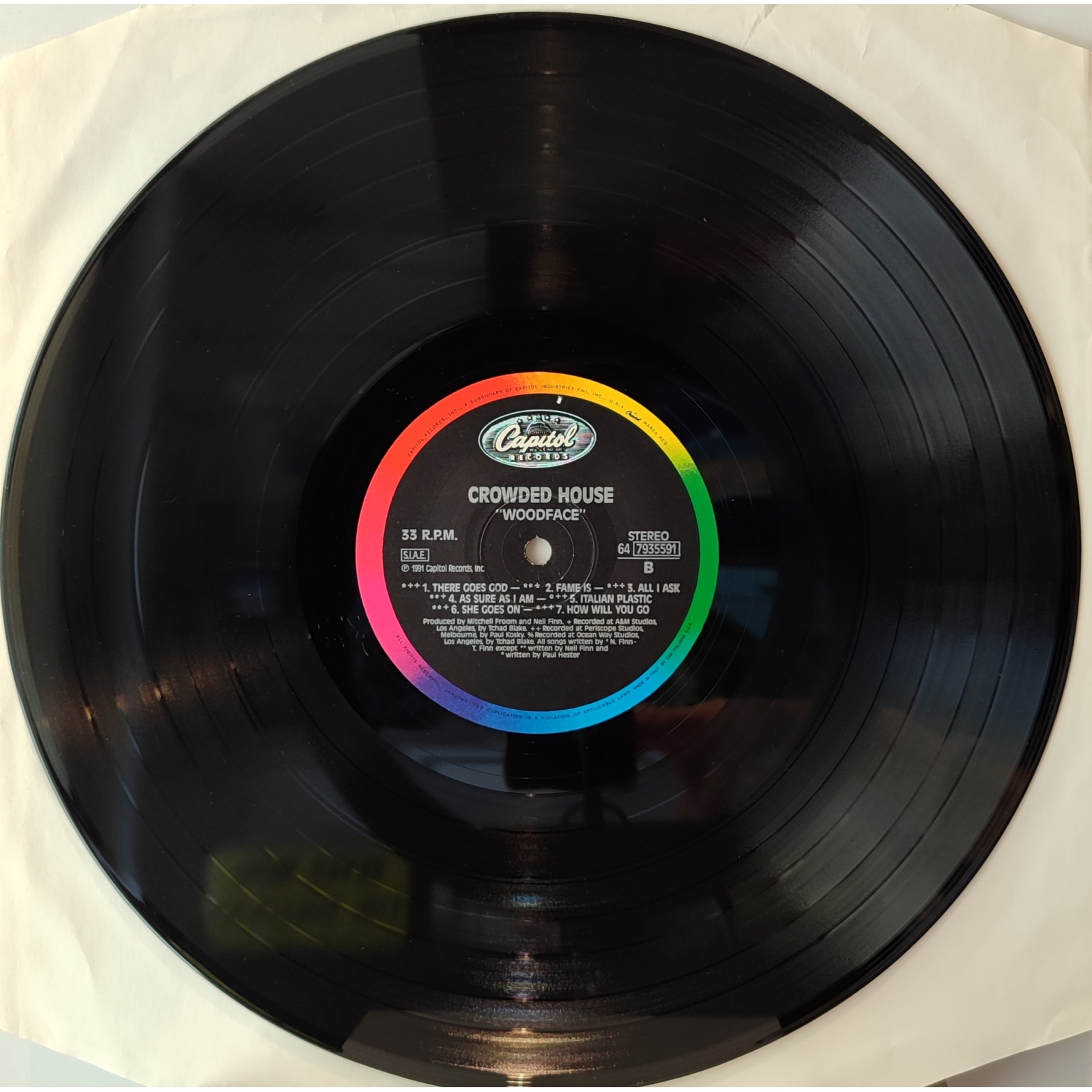Prima edizione italiana in vinile di seconda mano del terzo album in studio del gruppo pop rock australiano Crowded House,"Woodface".