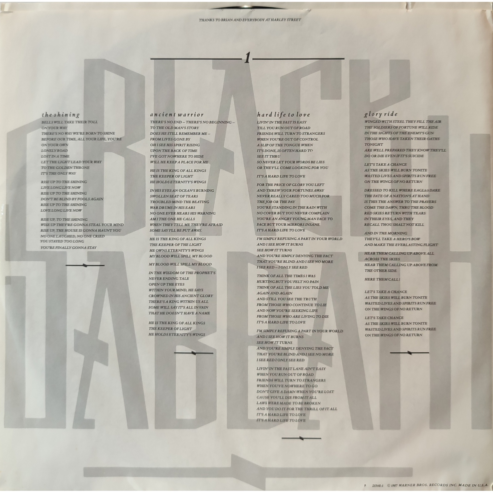 Datato 1987, etichetta Warner Bros, Allied pressing, comprensivo di inner sleeve originale con testi.