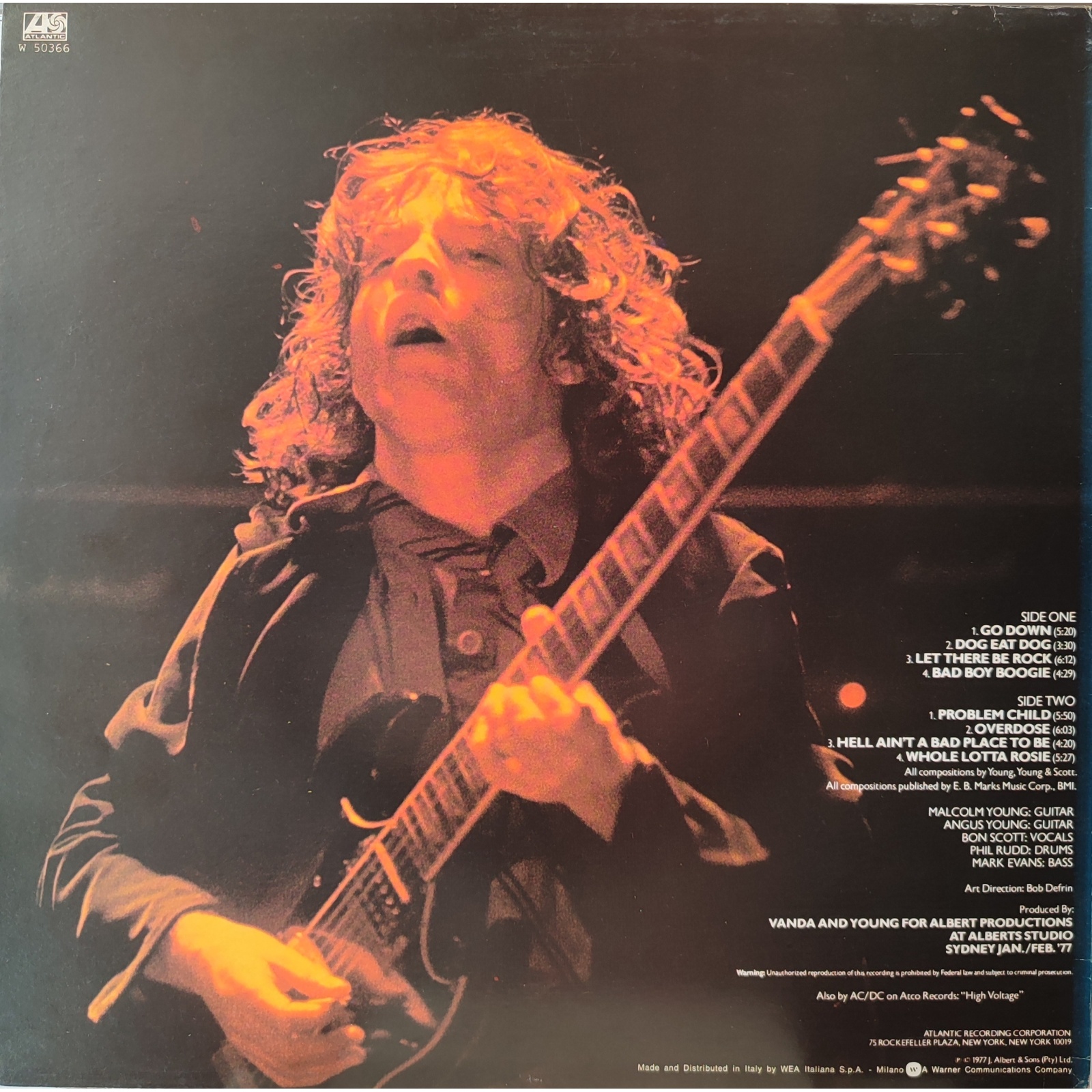 Ristampa italiana in vinile di seconda mano del quarto album in studio del gruppo hard rock australiano AC/DC, "Let there be rock".