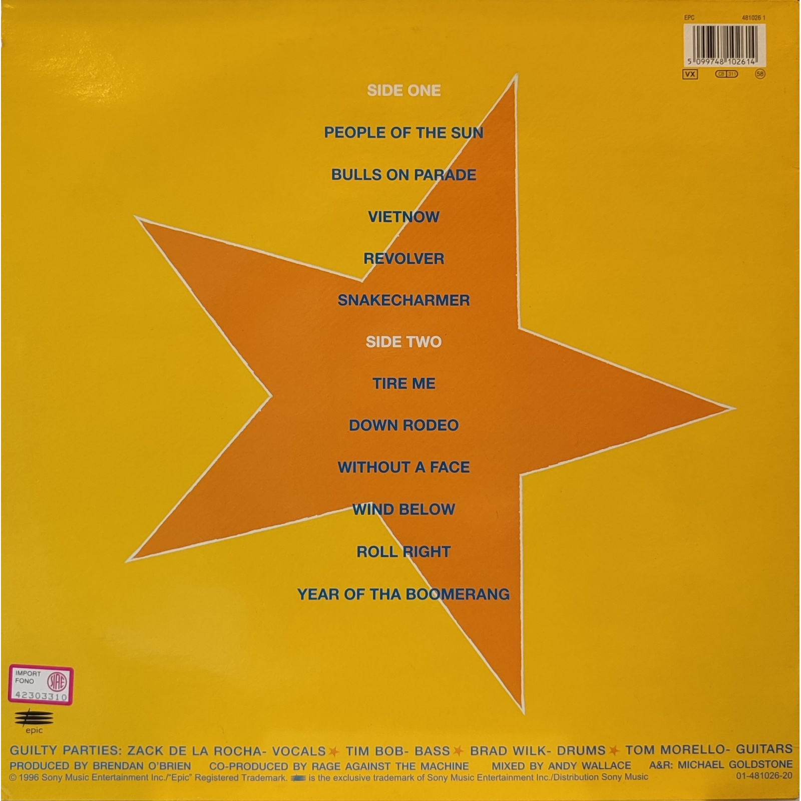 Datato 1996, etichetta Epic, comprensivo di inner sleeve originale con testi e foto.