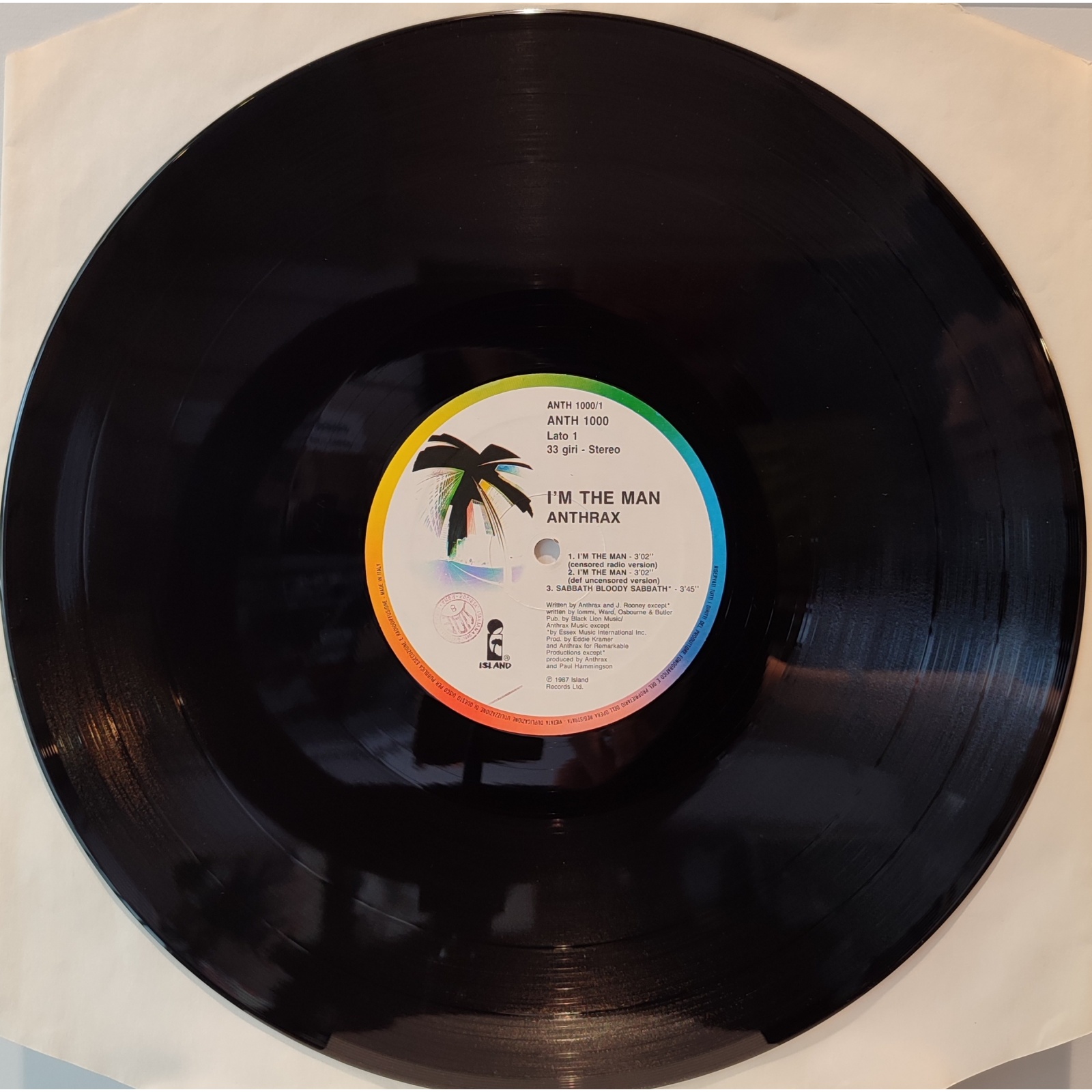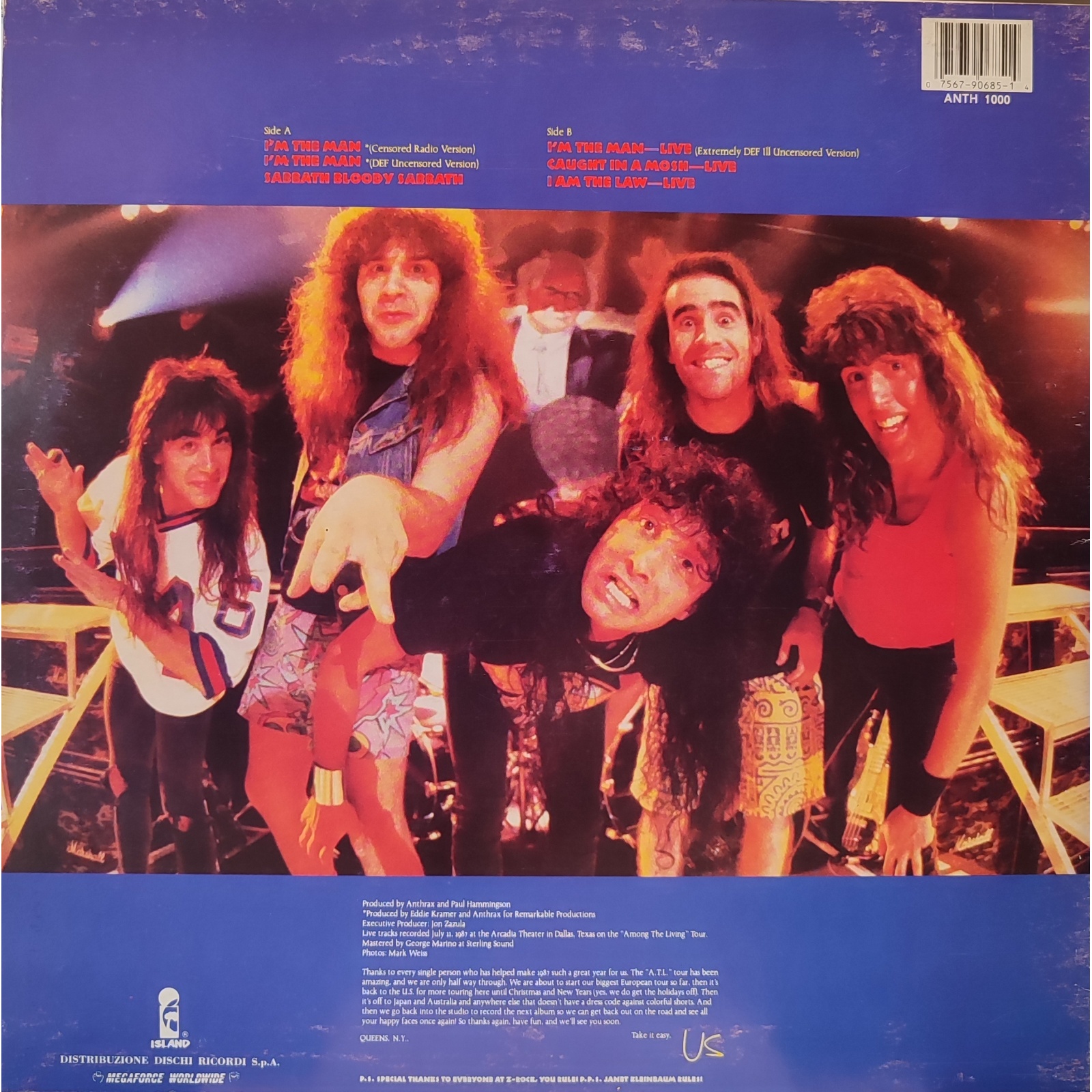 Prima edizione italiana in vinile di seconda mano dell'EP "I'm the man" del gruppo heavy metal statunitense Anthrax.