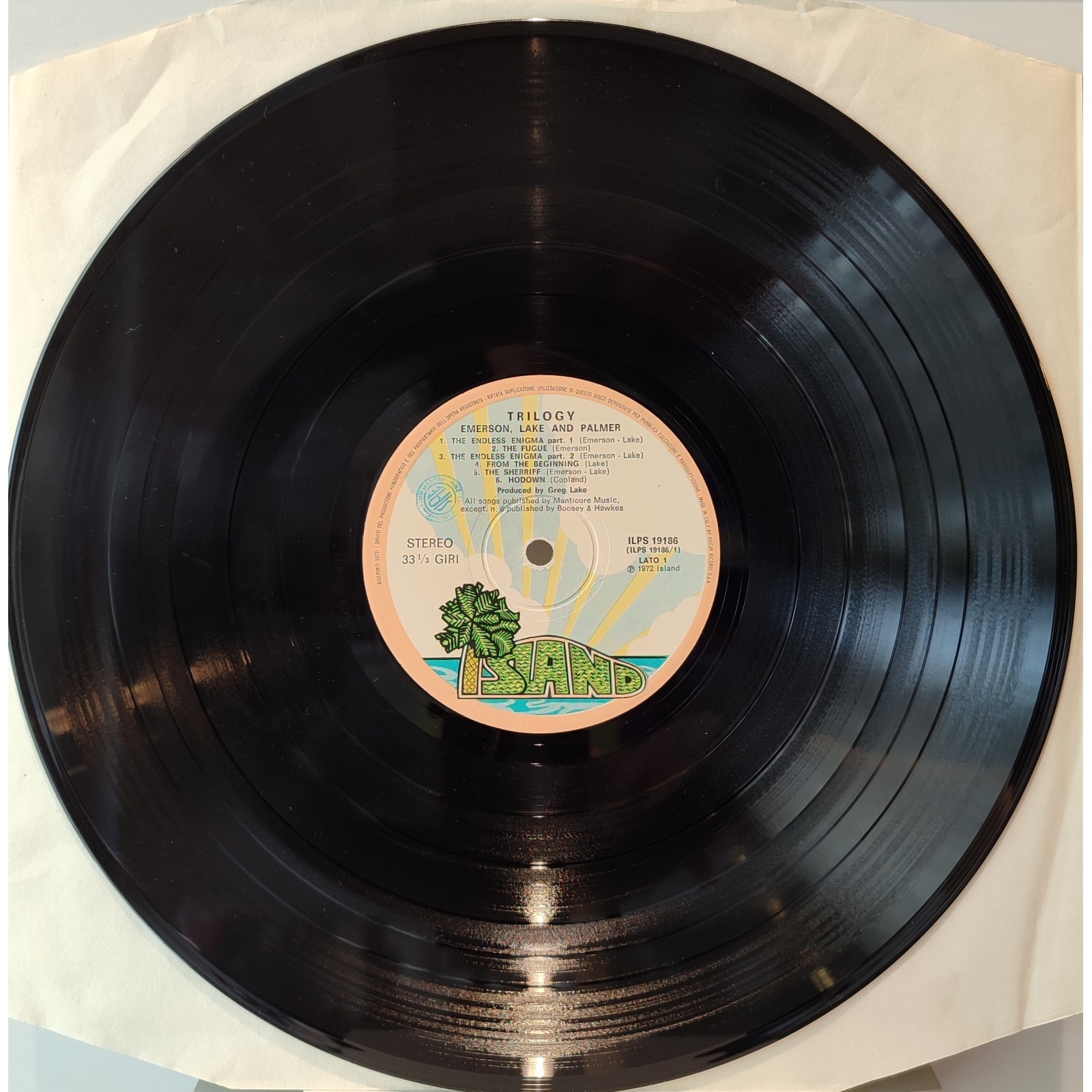 Prima edizione italiana in vinile di seconda mano del terzo album in studio del gruppo progressive britannico Emerson Lake e Palmer,"Trilogy".