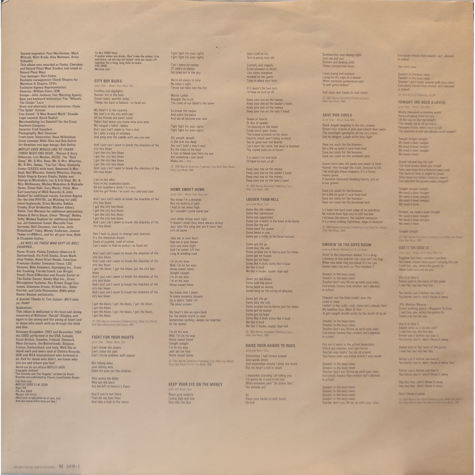 Prima edizione italiana in vinile di seconda mano del terzo album in studio del gruppo heavy metal statunitense Mötley Crüe,"Theatre of pain".