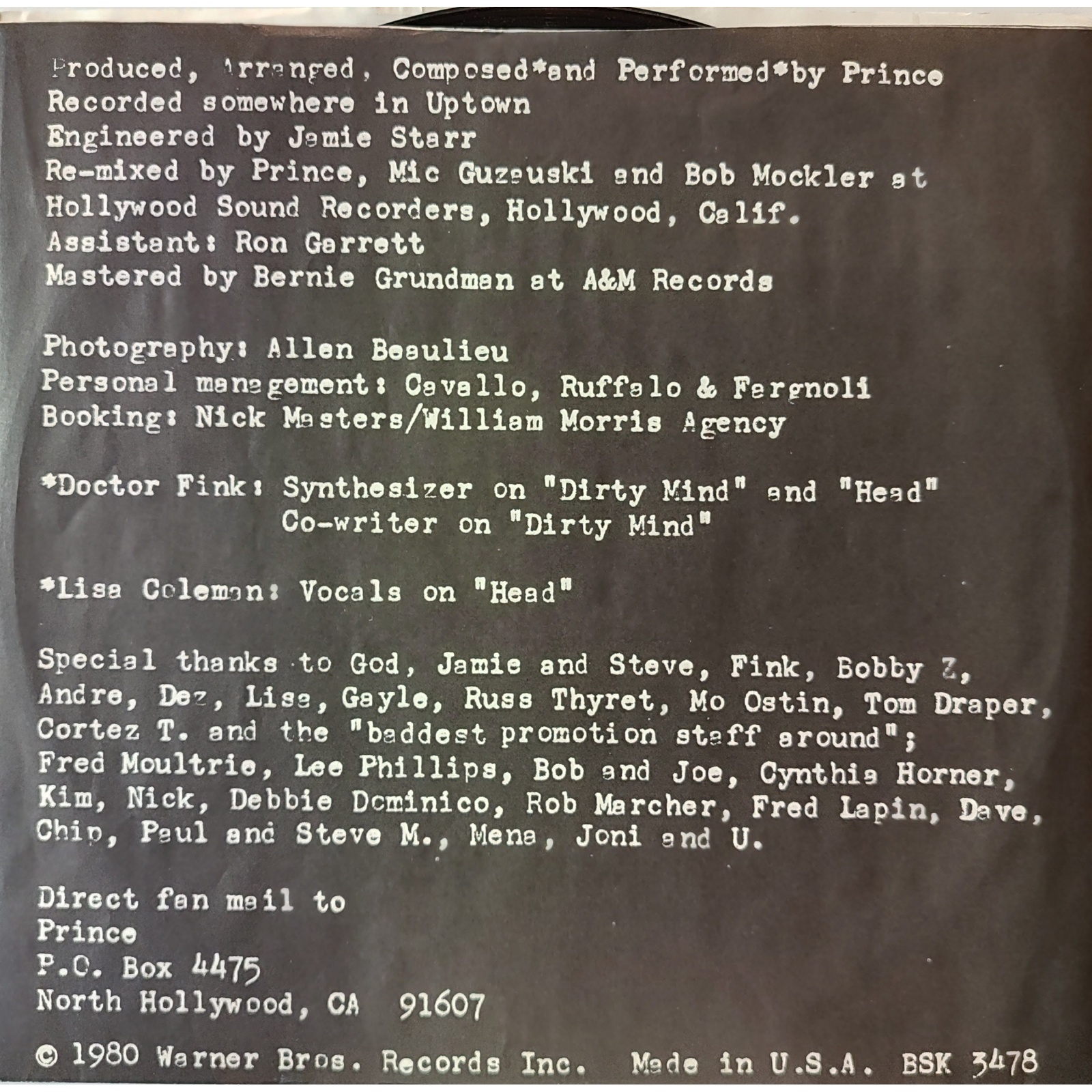 Prima edizione americana in vinile di seconda mano del terzo album in studio del cantante e musicista statunitense Prince, "Dirty Mind".