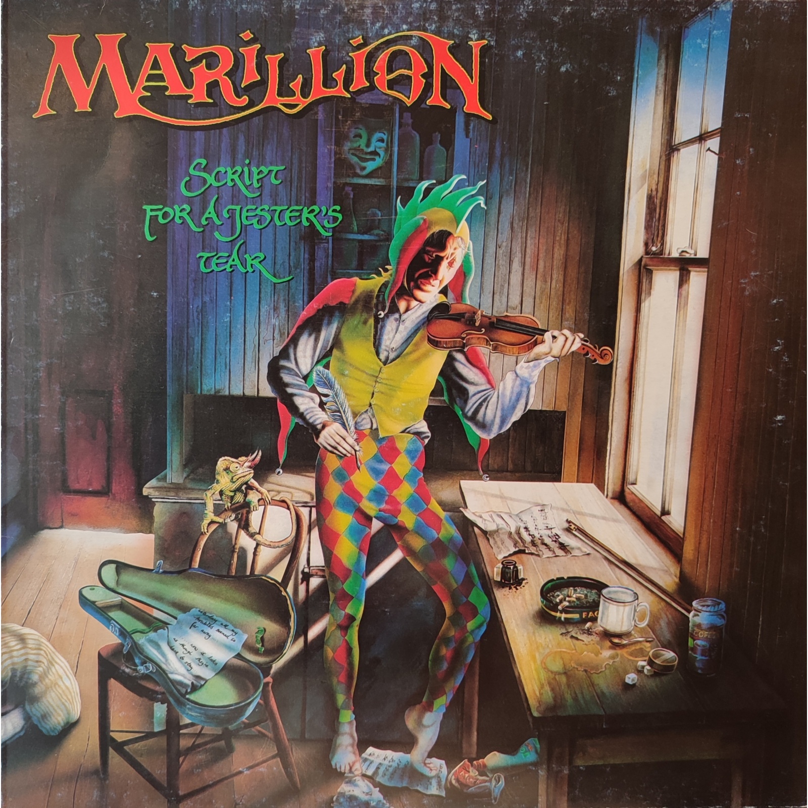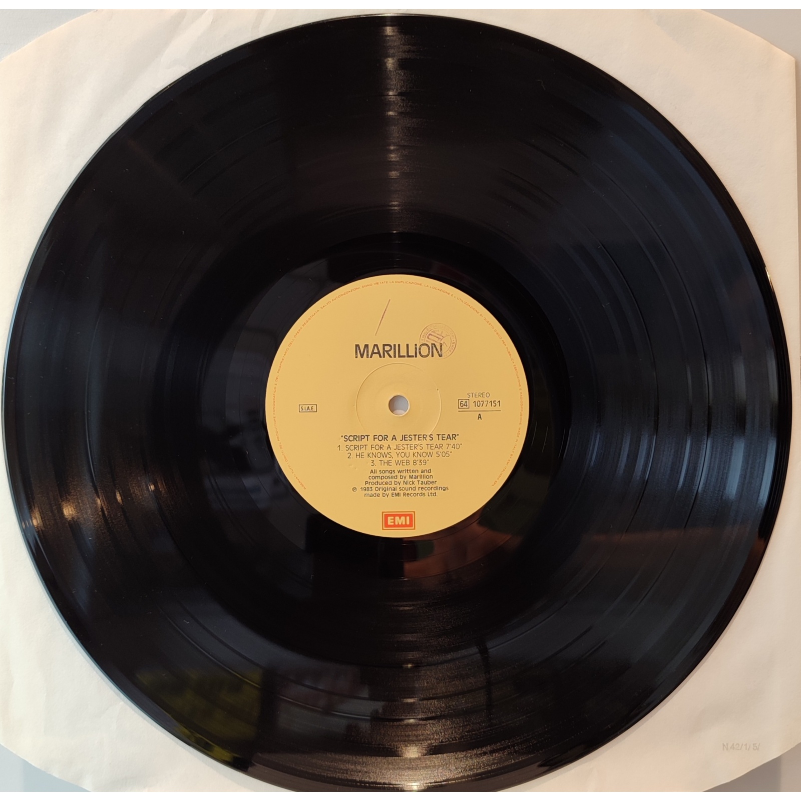Ristampa italiana in vinile di seconda mano del primo album in studio del gruppo rock progressive britannico Marillion,"Script for a Jester's tear".