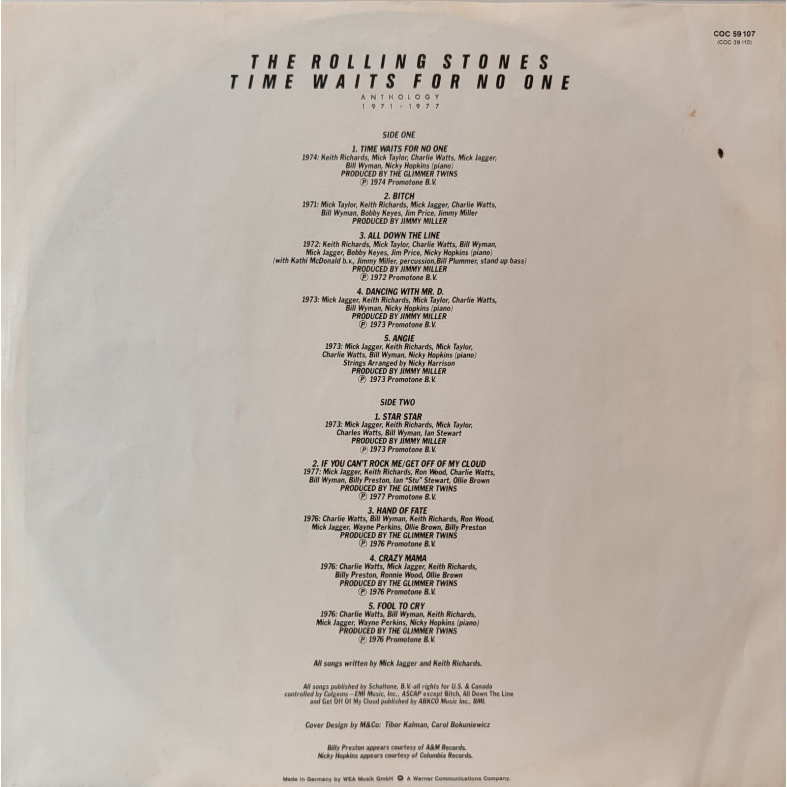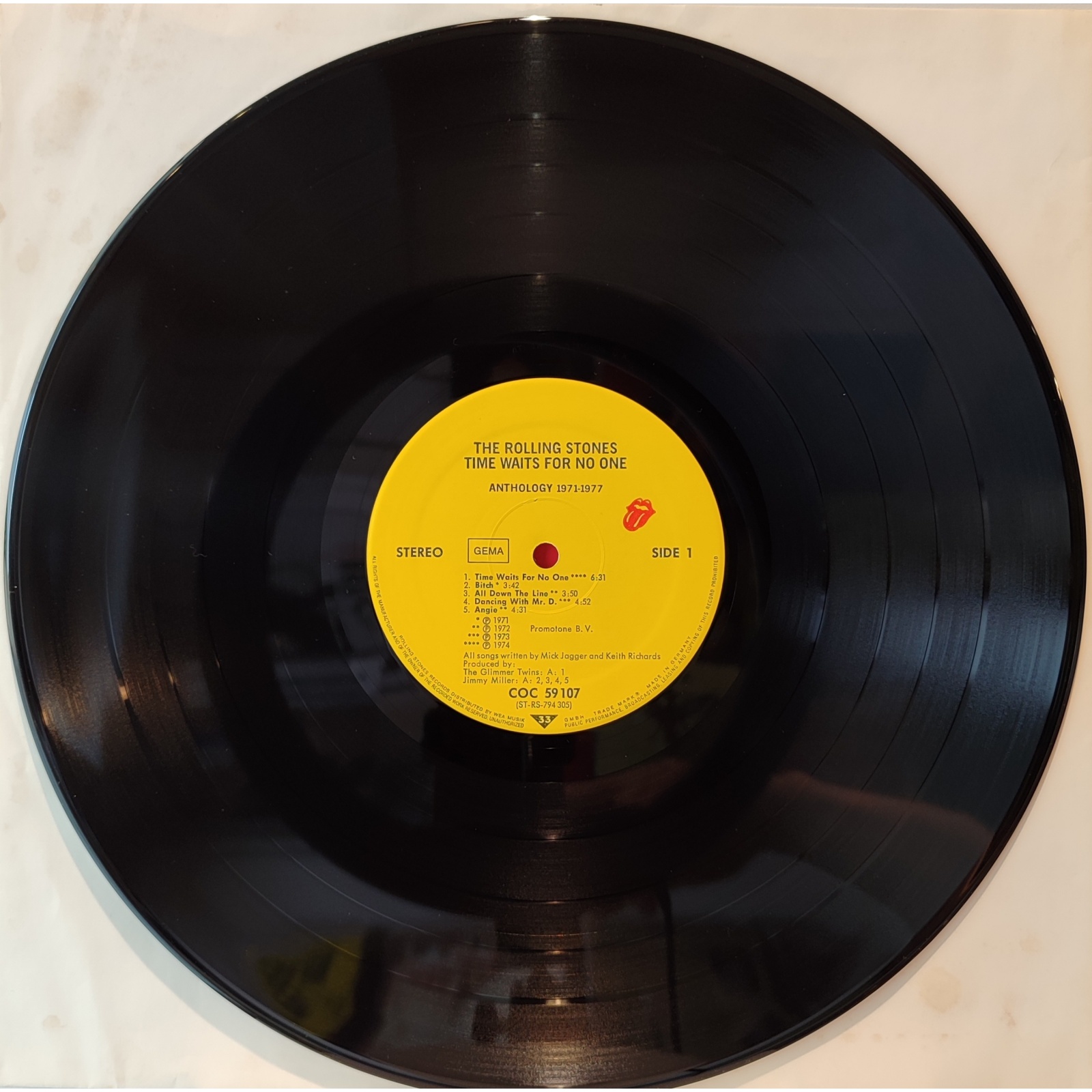 Prima edizione tedesca, in vinile di seconda mano, della raccolta "Time Waits for no One: Anthology 1971-1977" dei Rolling Stones.