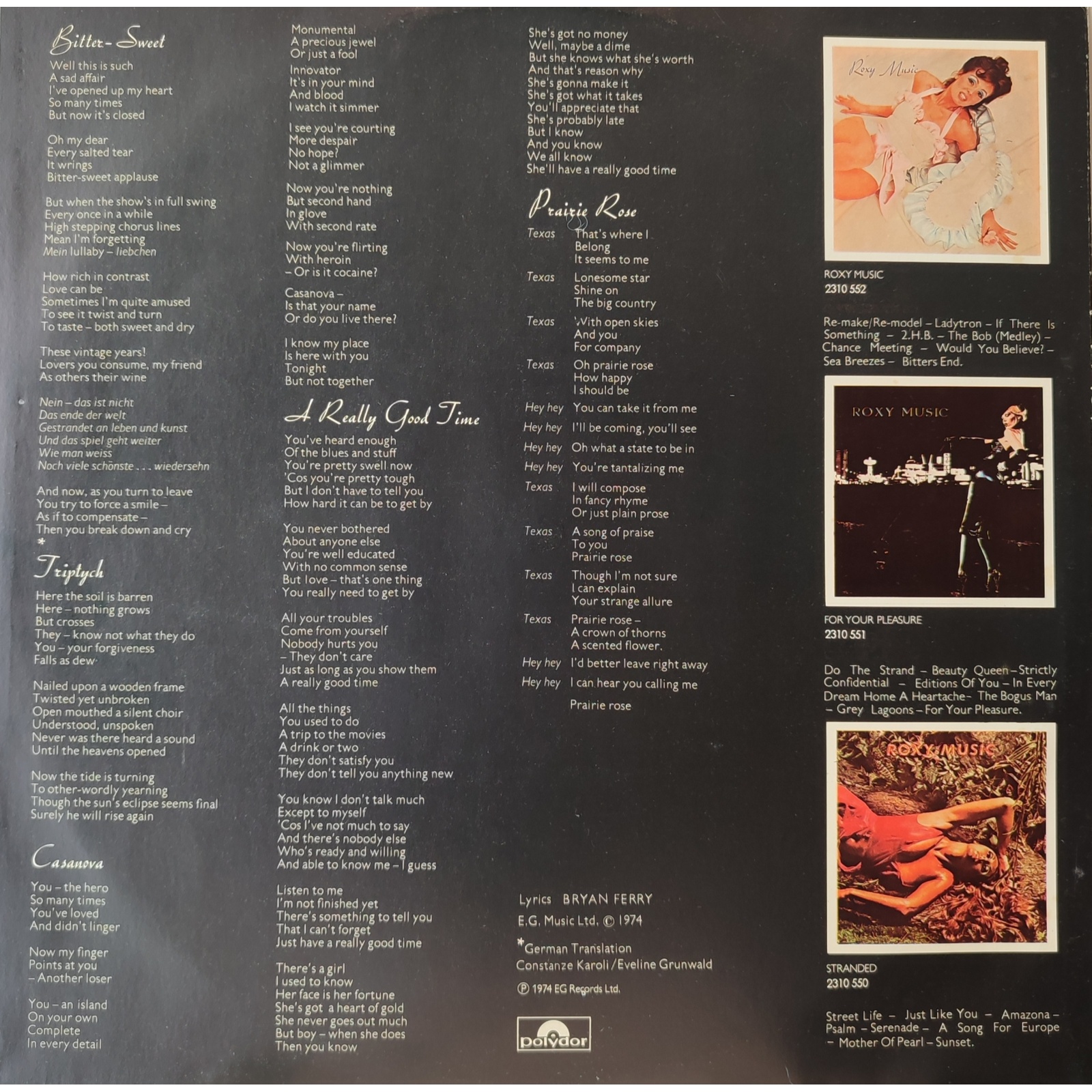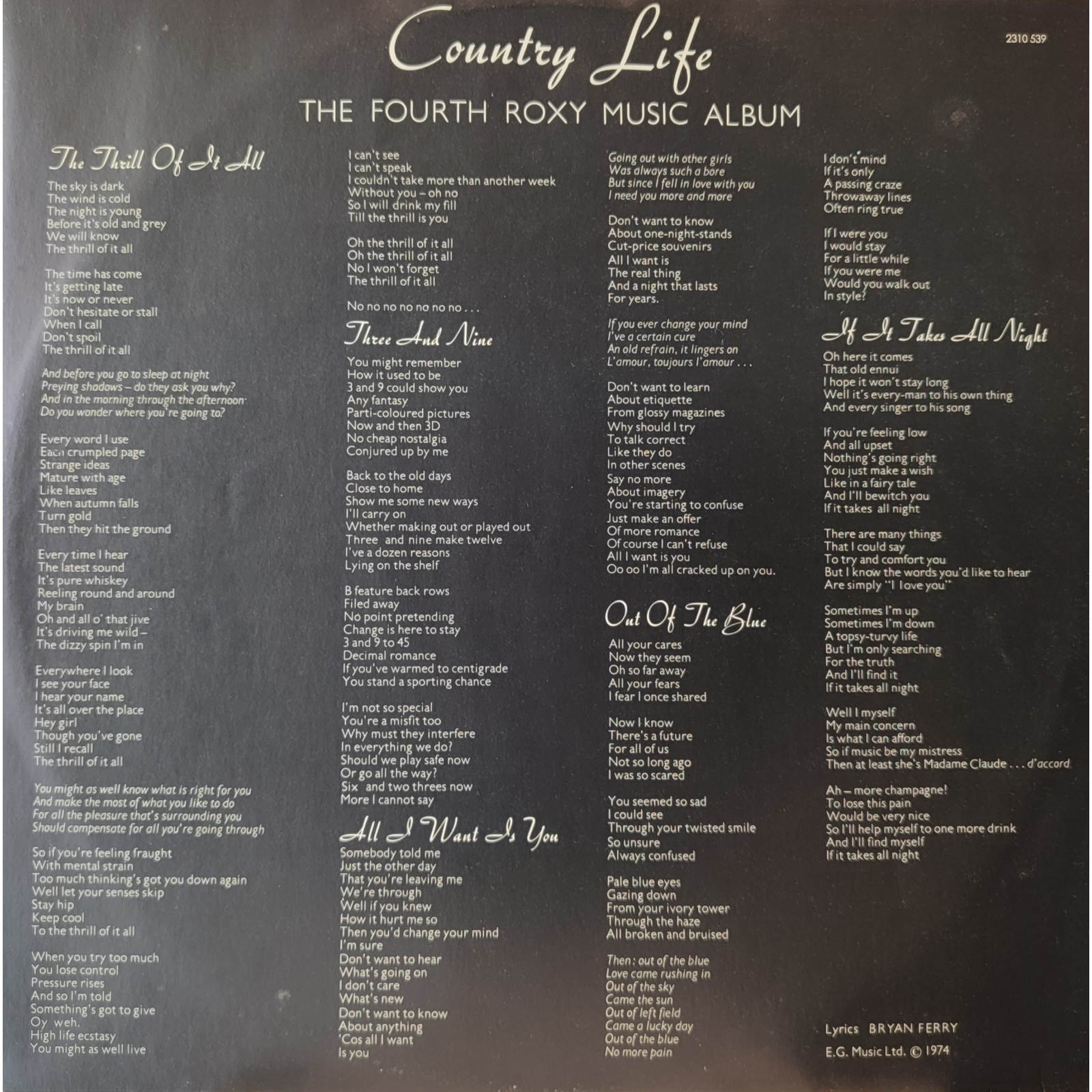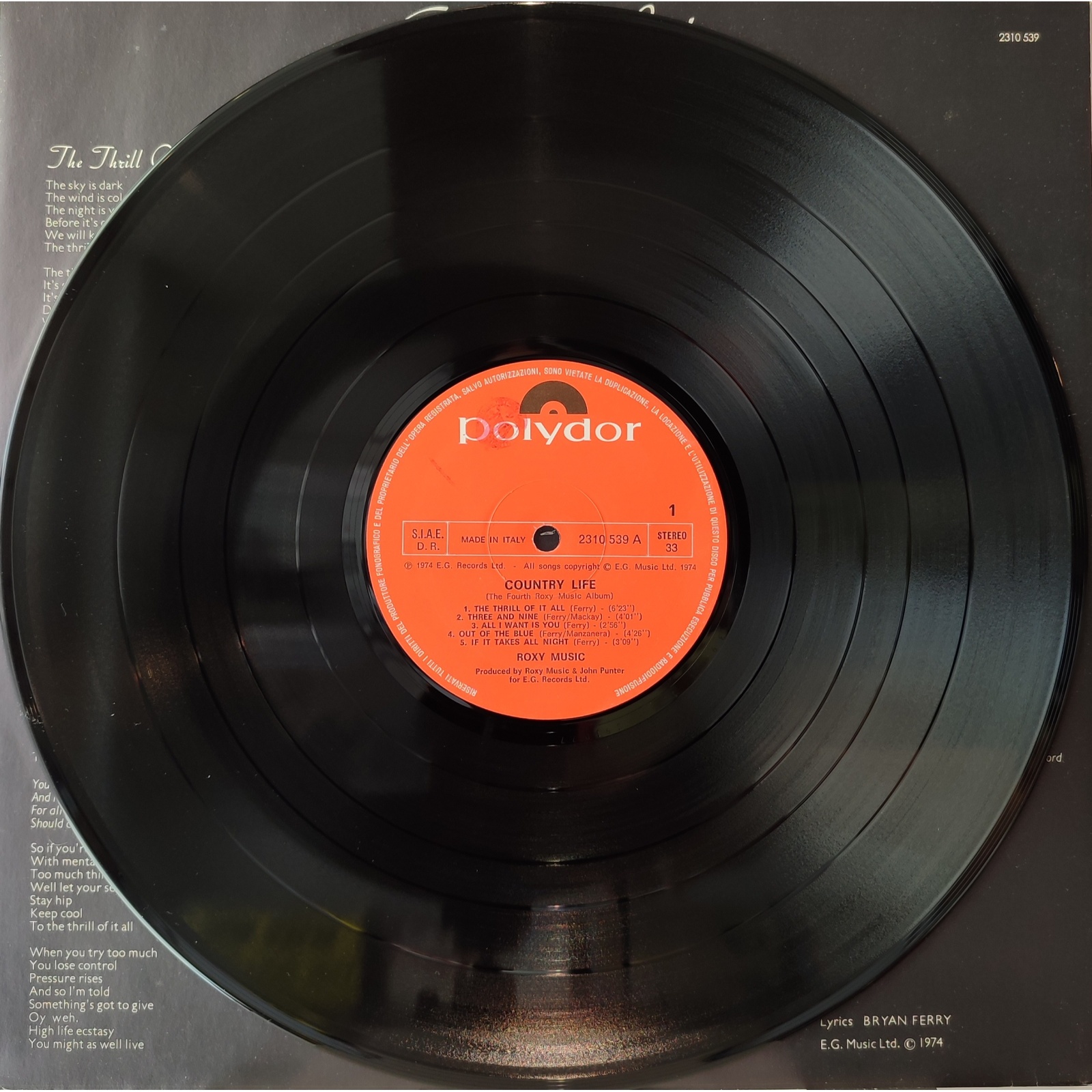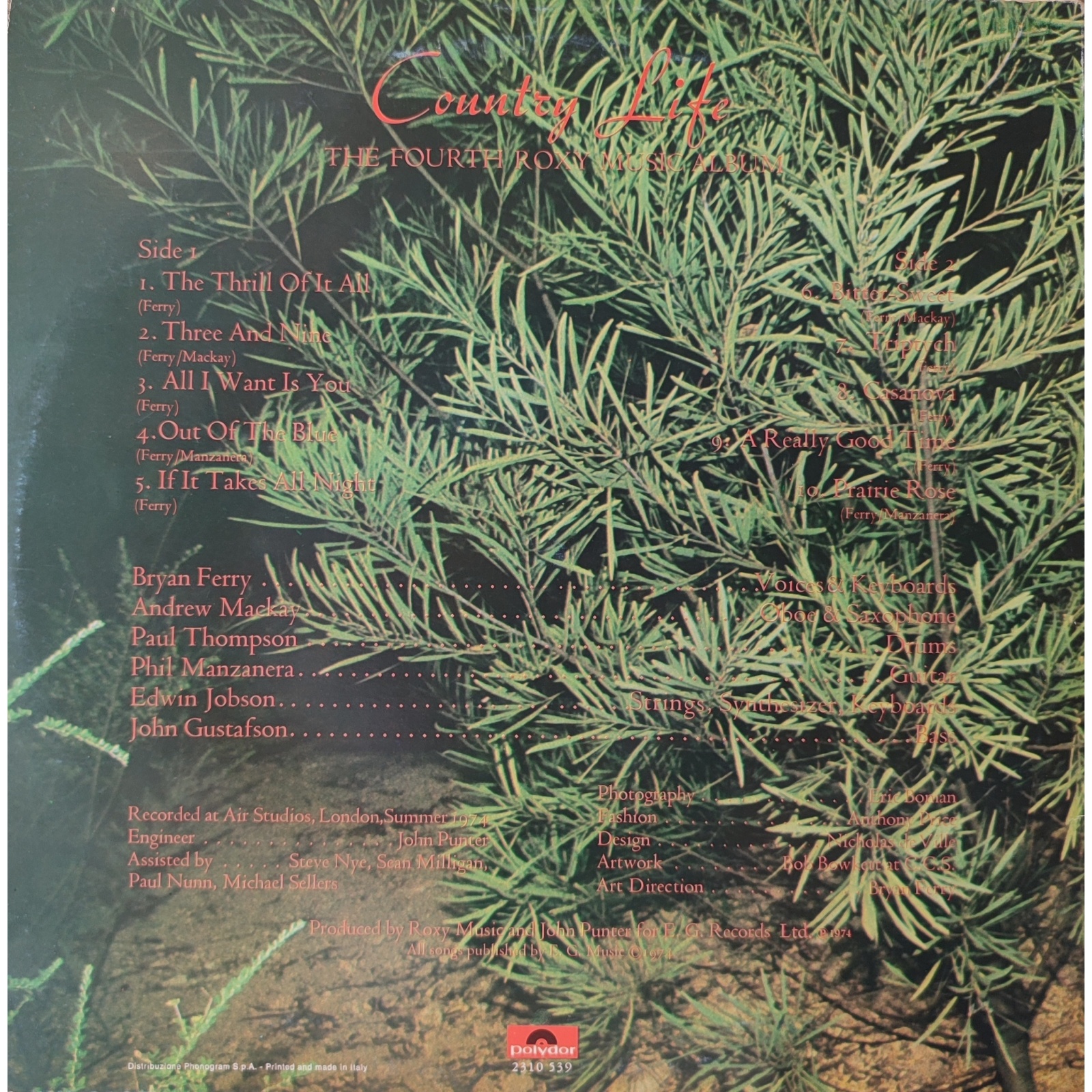 Ristampa italiana, in vinile di seconda mano, del quarto album in studio del gruppo glam rock inglese Roxy Music,"Country life".