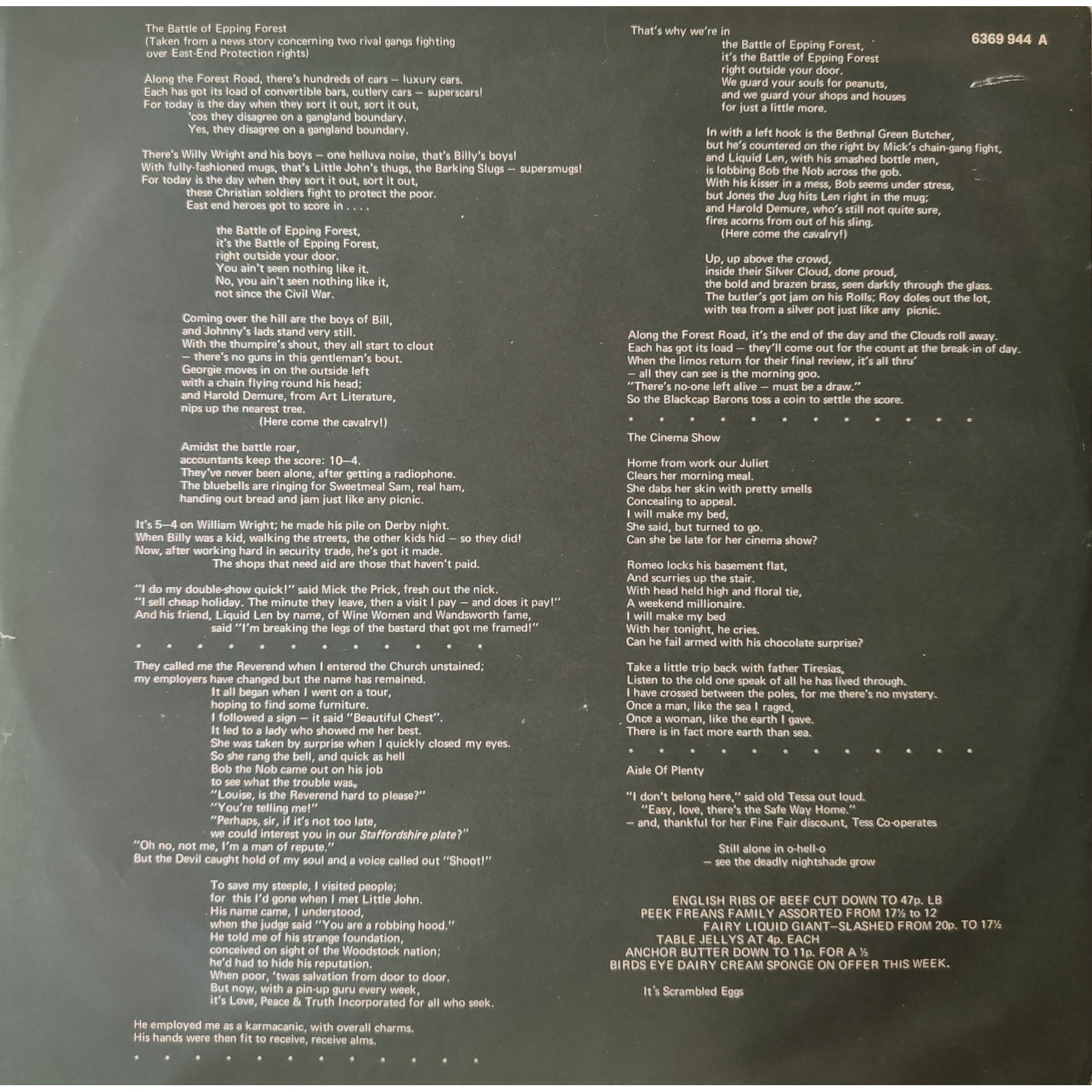 Prima edizione italiana, in vinile di seconda mano, del quinto album in studio del gruppo rock progressive britannico Genesis,"Selling England by the Pound".