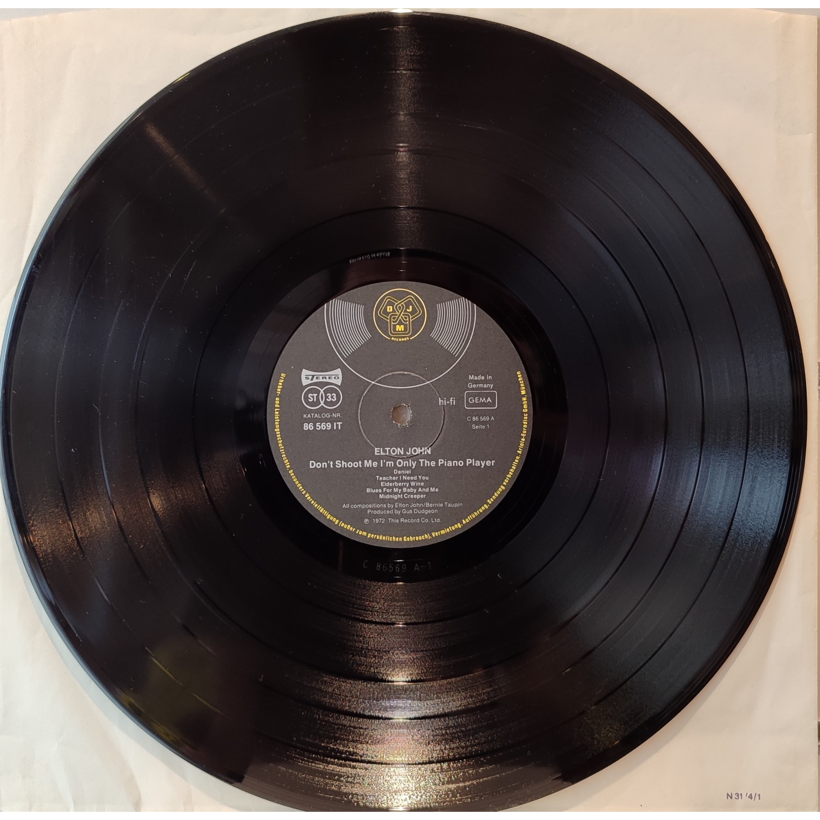 Prima edizione tedesca, in vinile di seconda mano, dell'ottavo album ( il sesto in studio) del musicista, compositore e cantante britannico Elton John,"Don't shoot me I'm only the piano player".
