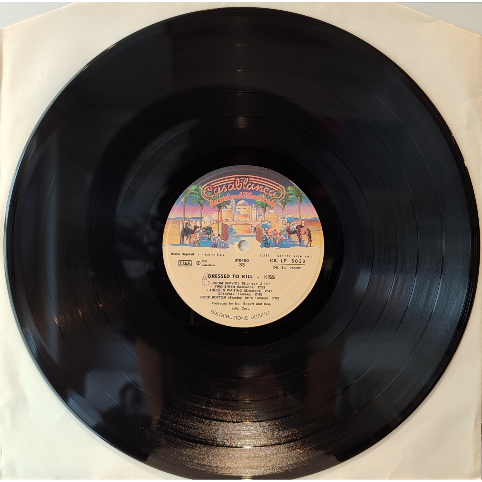Bellissima prima edizione italiana, in vinile di seconda mano, del terzo album in studio del gruppo hard rock statunitense Kiss,"Dressed to kill".