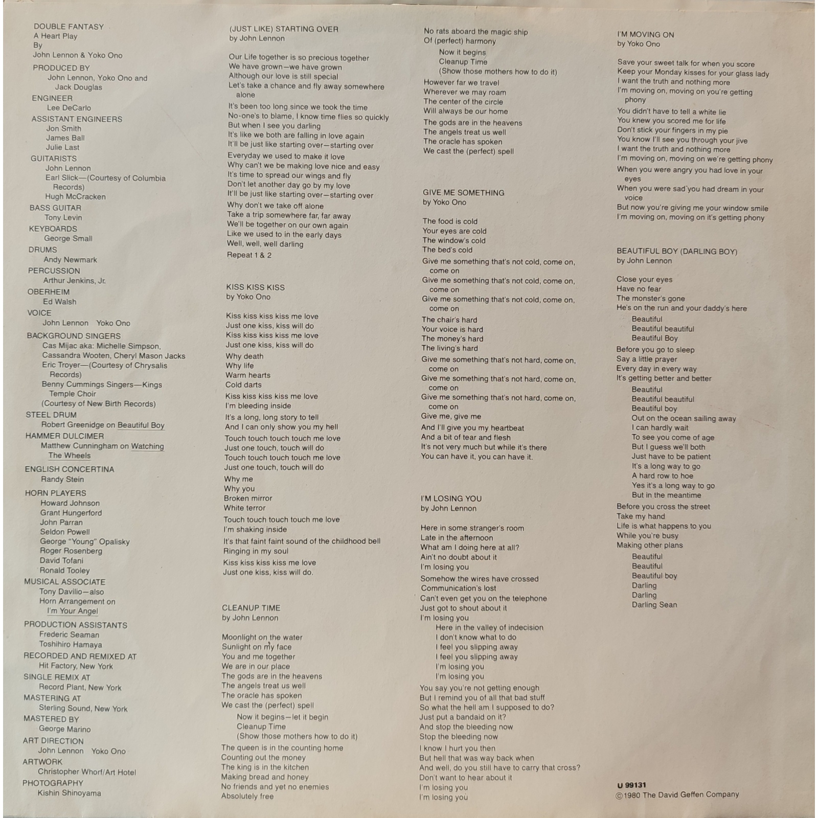 Datato 1980, etichetta Geffen, comprensivo di inner sleeve originale con testi.