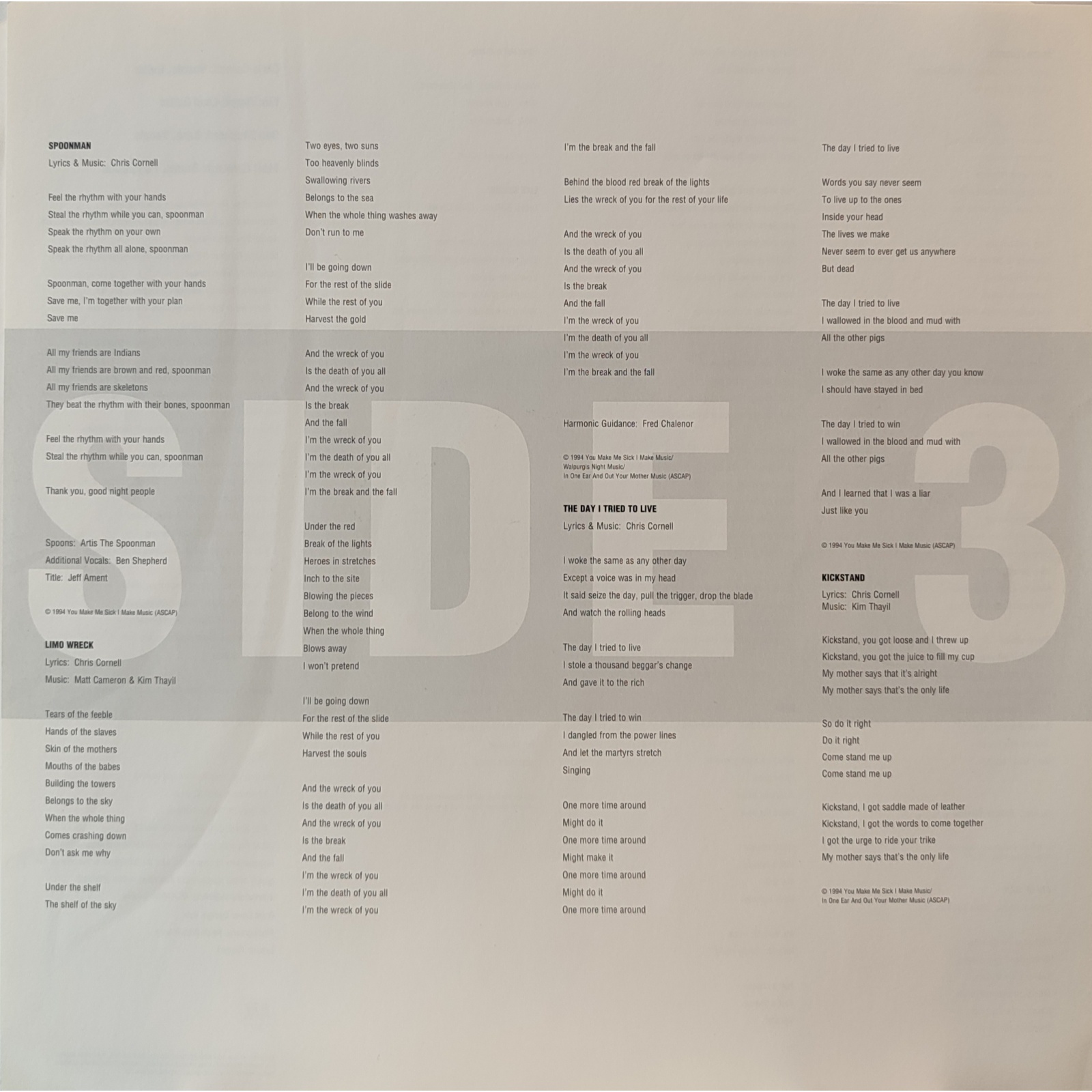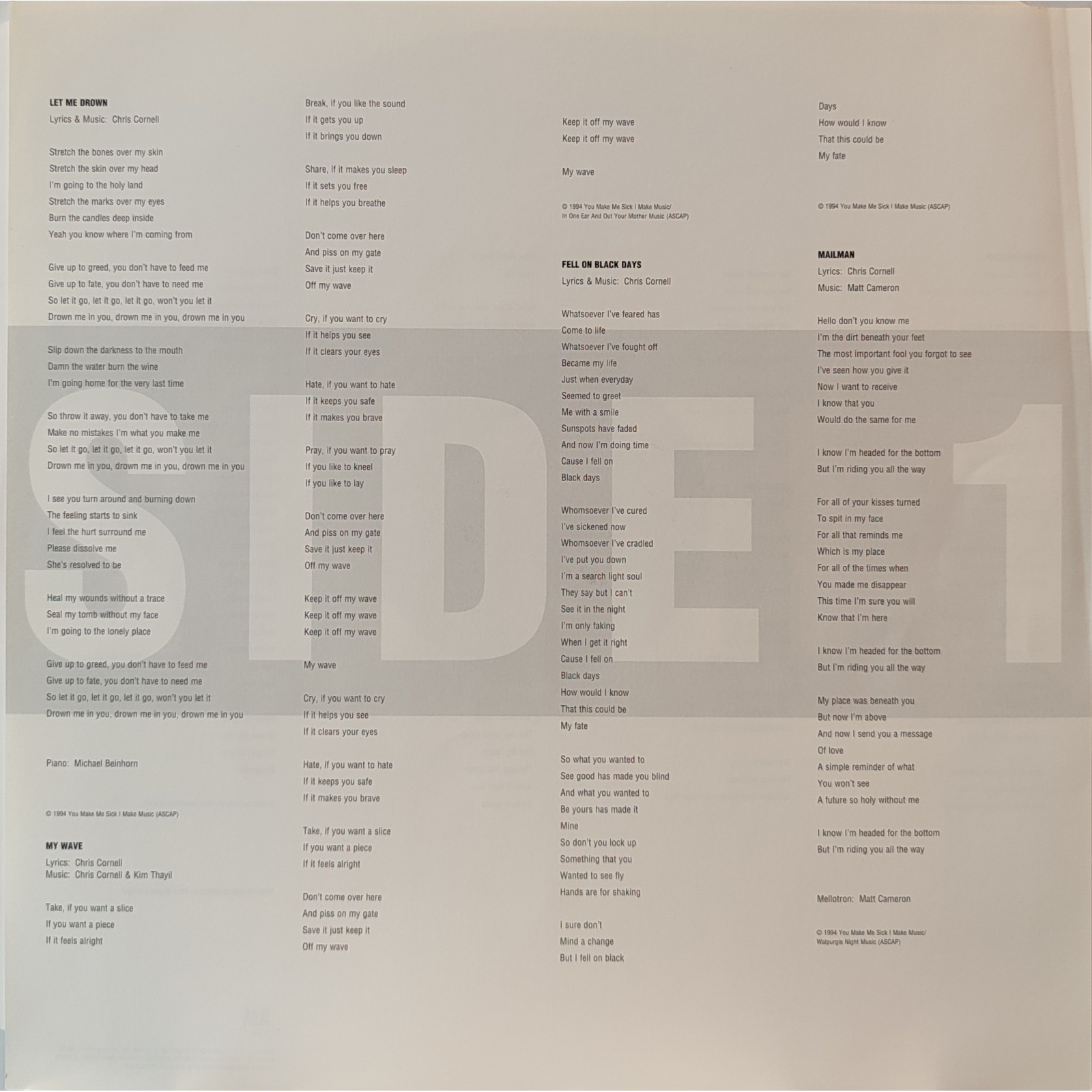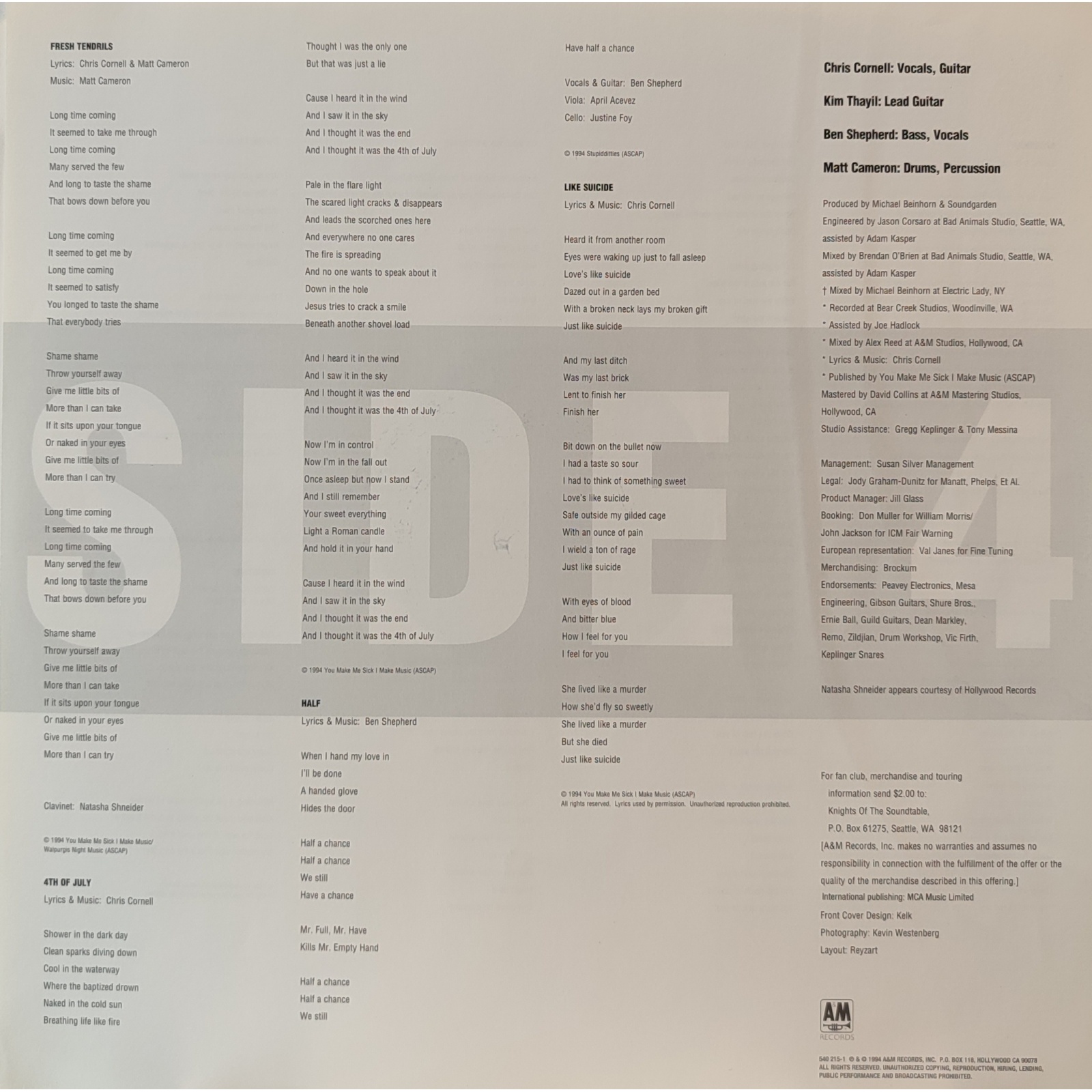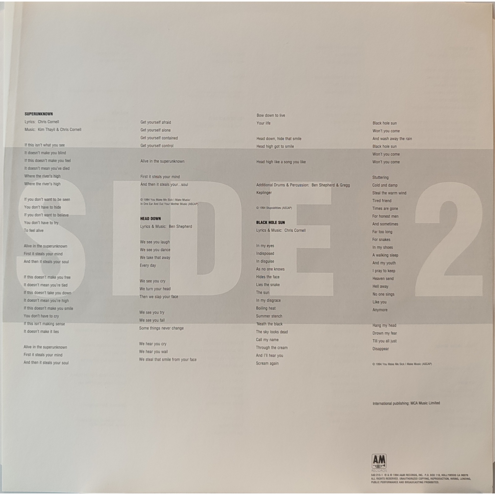 Rara prima edizione europea, in vinile di seconda mano, del quarto album in studio del gruppo grunge di Seattle Soundgarden,"Superunknown".