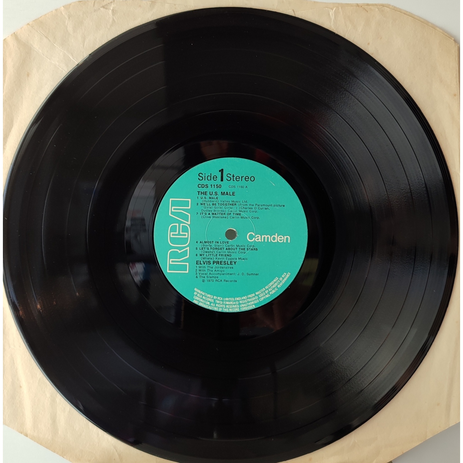 Ristampa inglese, in vinile di seconda mano, della raccolta "The U.S. male" di Elvis Presley.
