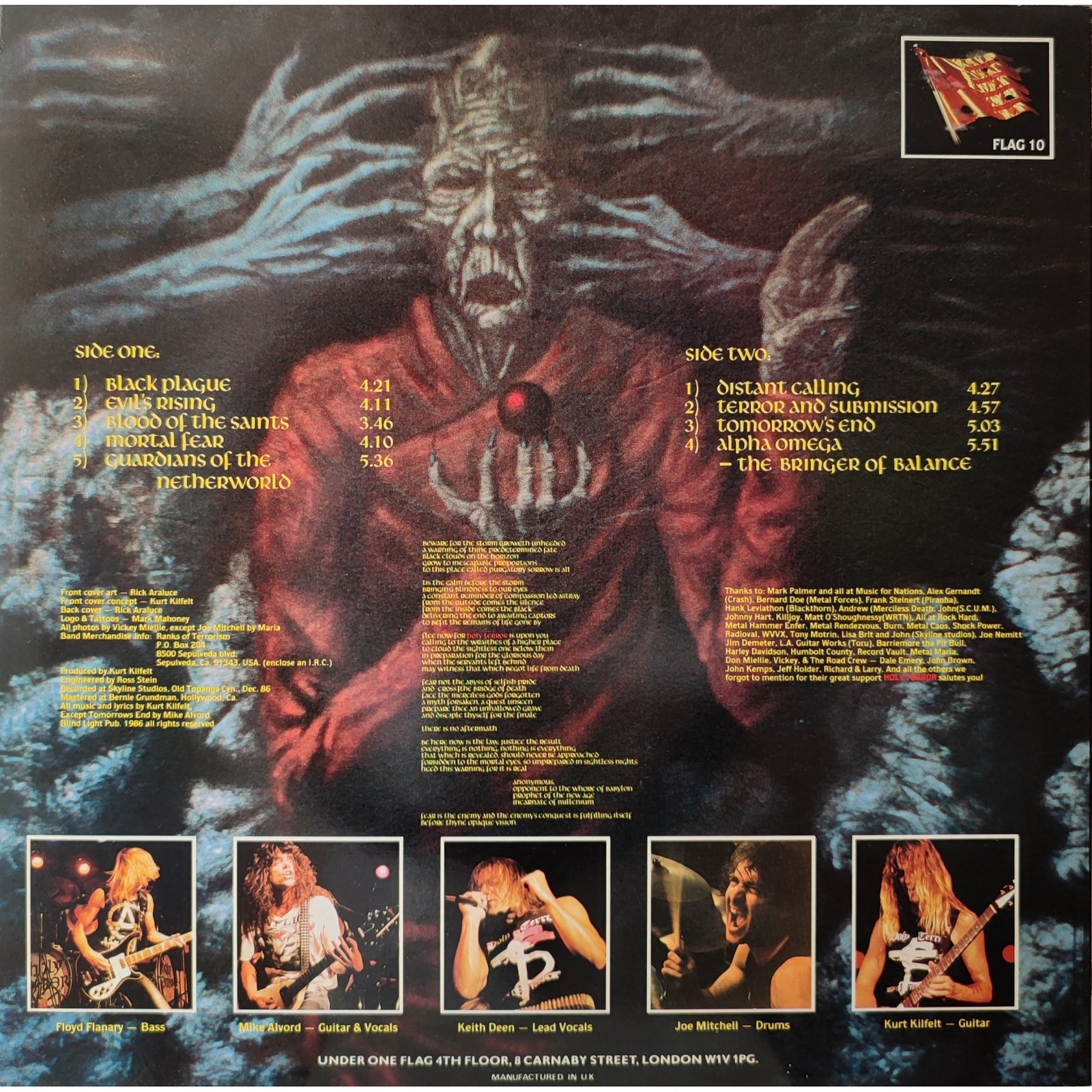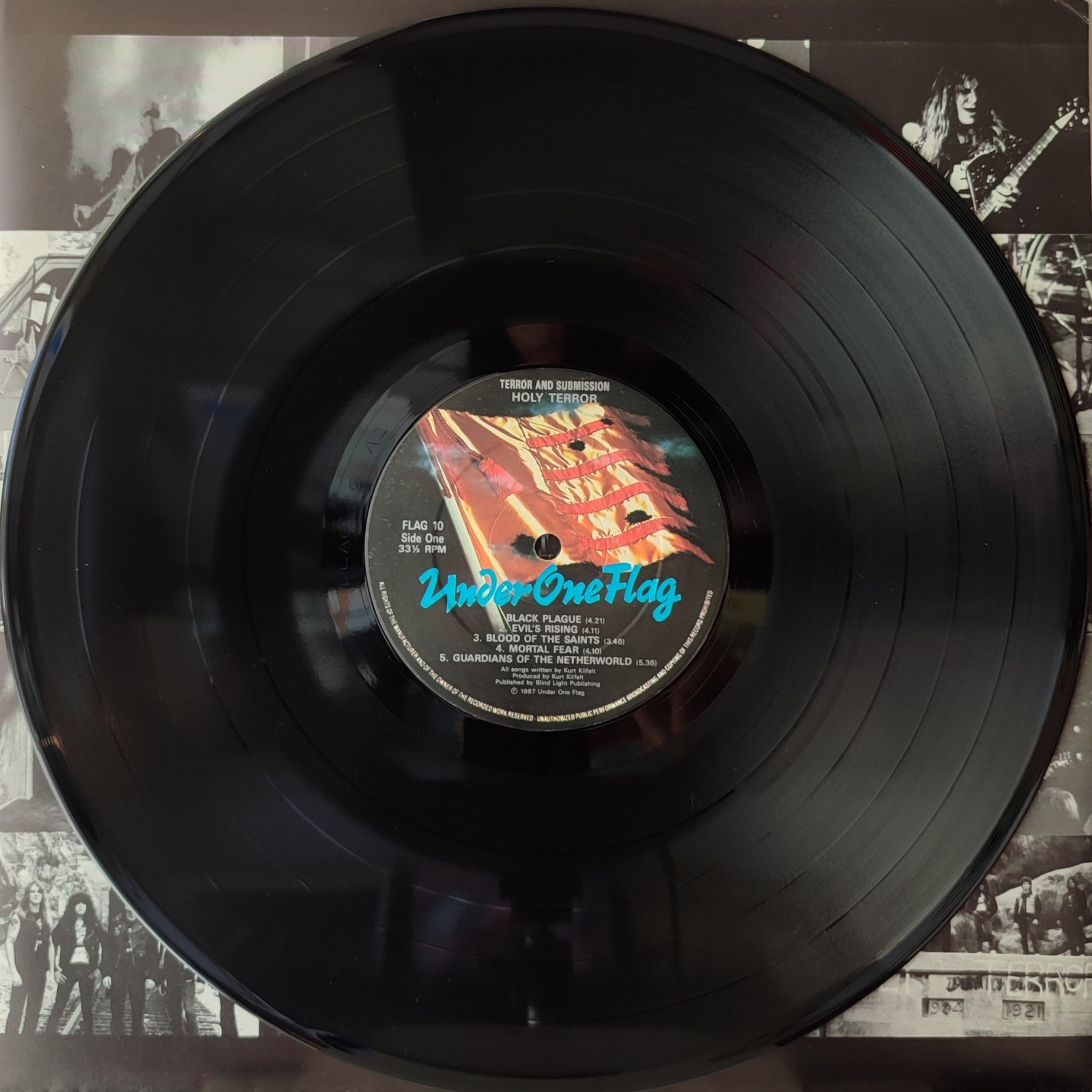 Rara prima edizione inglese, in vinile di seconda mano, del primo album in studio del gruppo heavy metal statunitense Holy Terror,"Terror and submission".