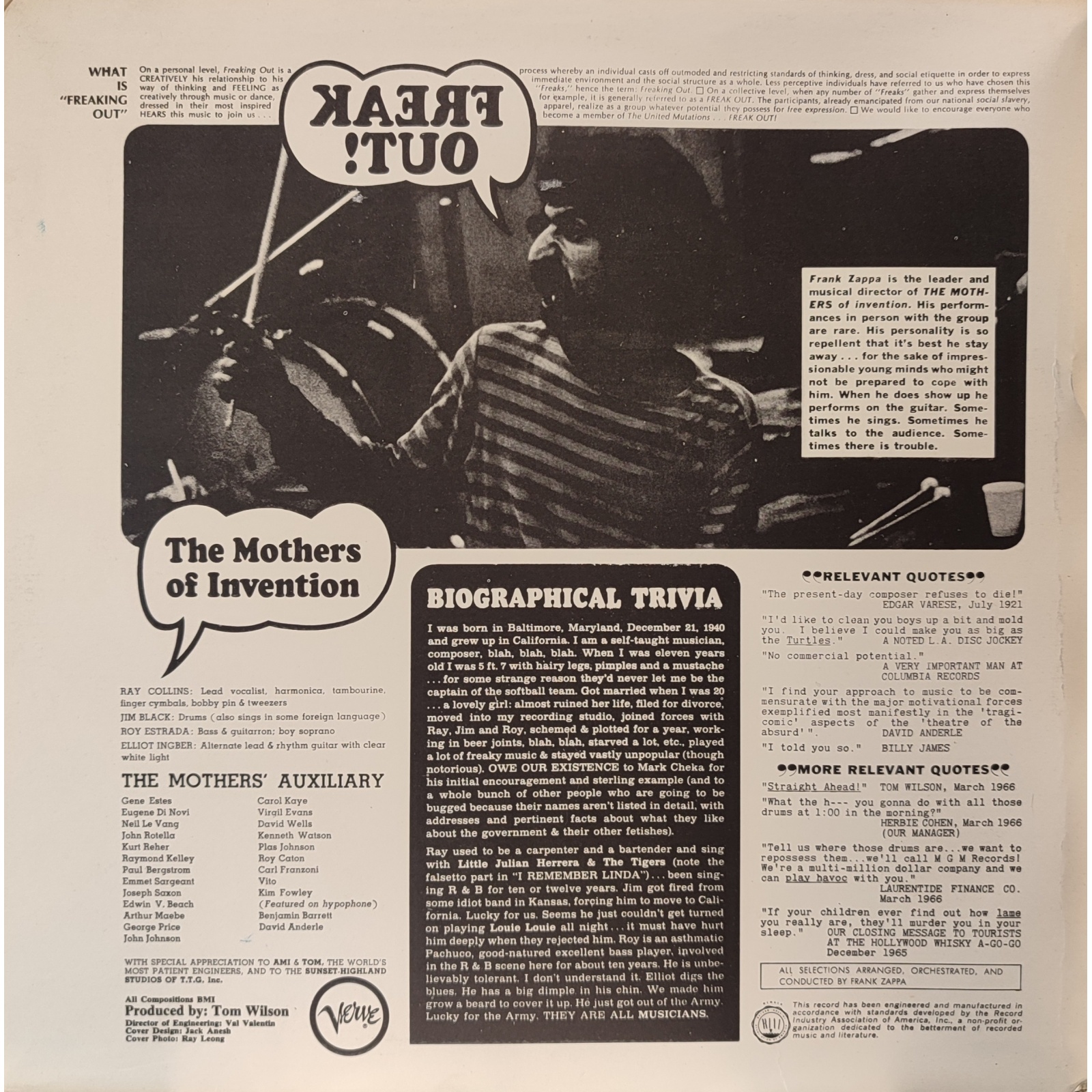 Ristampa americana in vinile di seconda mano, del primo album in studio del gruppo guidato dal chitarrista Frank Zappa The Mothers of Invention,"Freak out!".